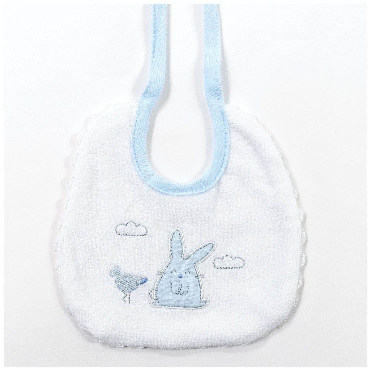 Round bib made of pure cotton chenille embroidered in the center with a bunny.
