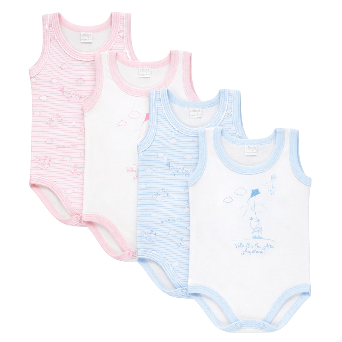 Set of 2 sleeveless wide-shoulder baby bodysuits in pure cotton – Ellepi