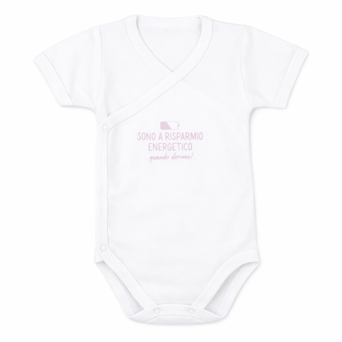 White short-sleeve newborn bodysuit in cotton and bamboo with side opening – Coccode’ Firenze