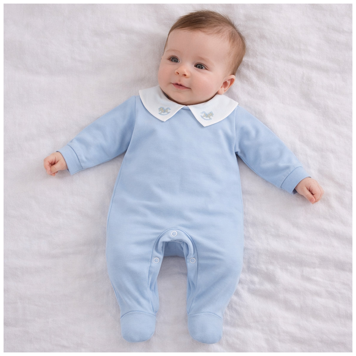 Cotton jersey baby sleepsuit with embroidered collar – CI195AZ – Corredino