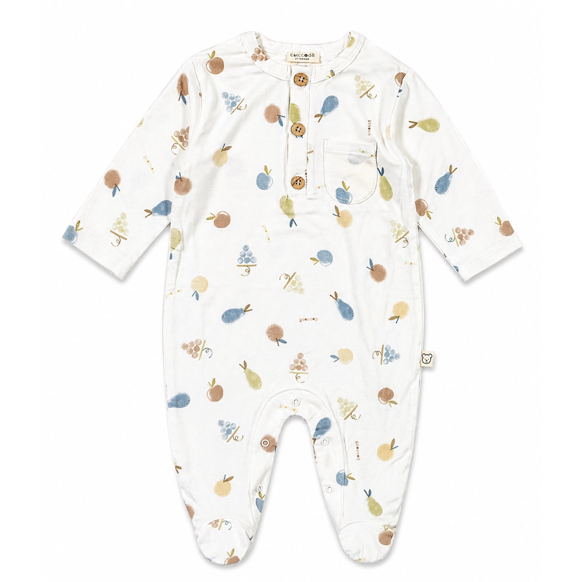 The Fruttiny print introduces a light and well-balanced visual language, easy to coordinate with other newborn essentials. The clean cut and studied proportions support the baby’s growth in the first months, maintaining consistent fit over time.