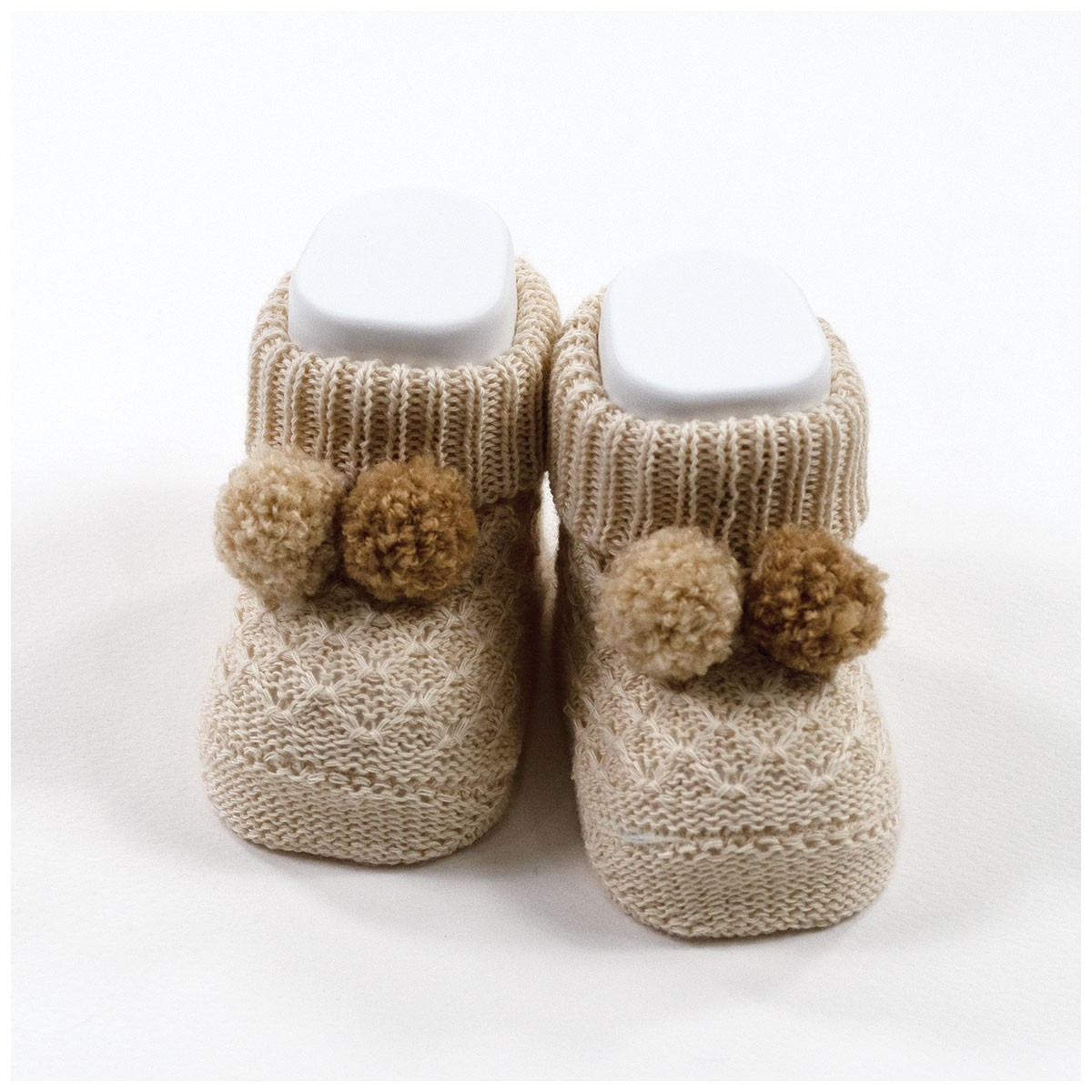 Newborn Booties in Knitted Cotton with Pom Poms – Mafer Collection
