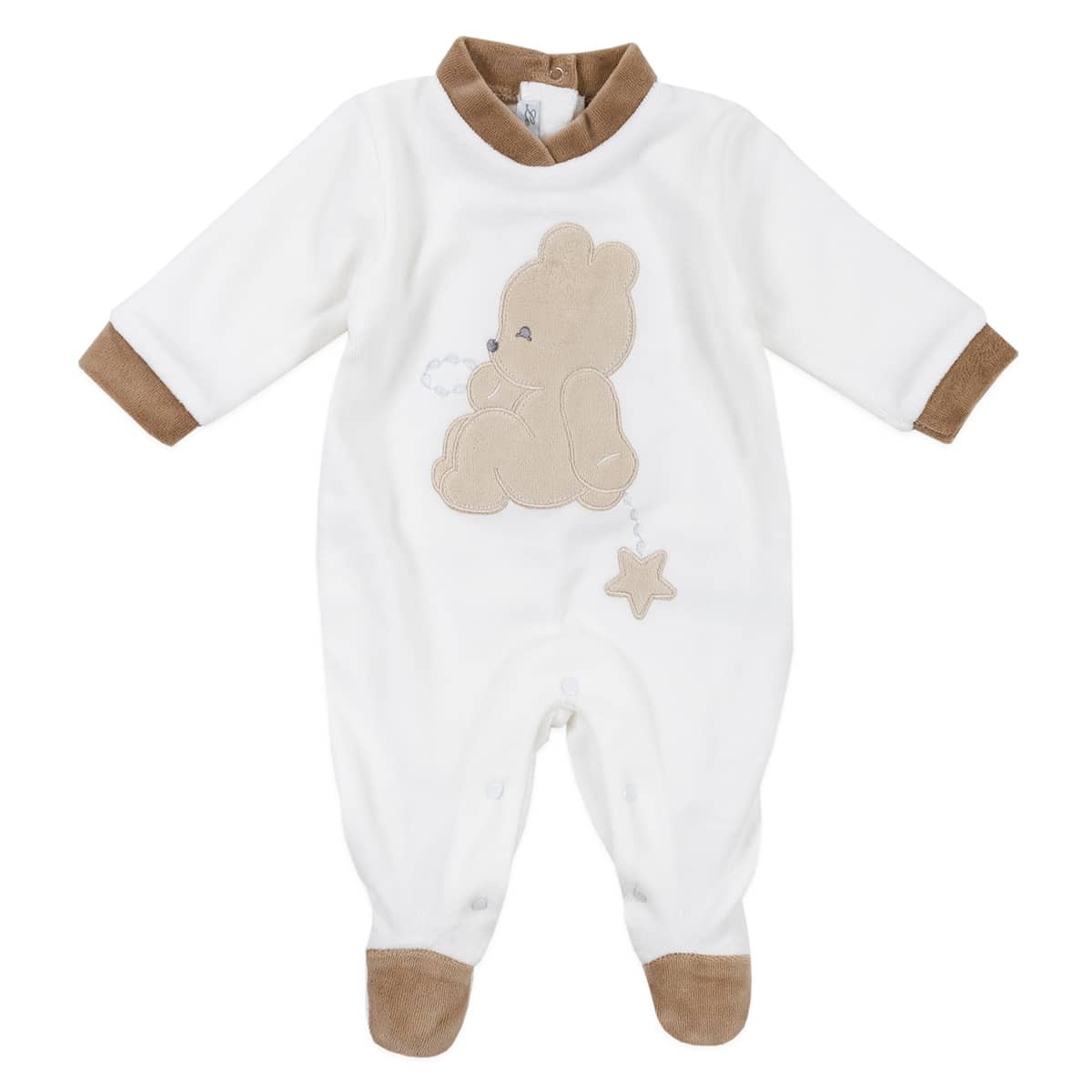 The classic design is enhanced by a sweet embroidery of a teddy bear holding a little star, making this romper ideal for any occasion, from naptime to outdoor strolls.