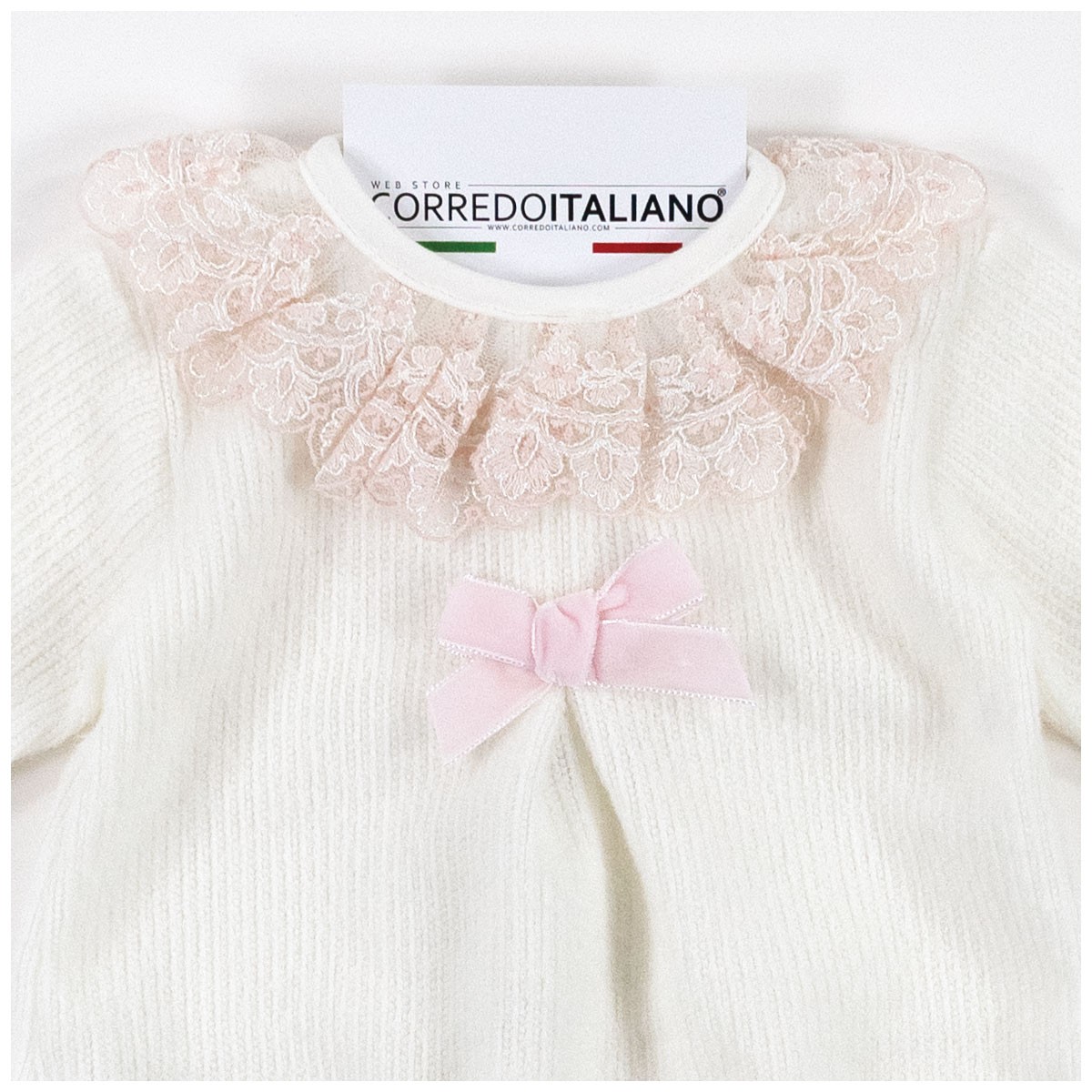 Winter Knit Cream Baby Romper with Pink Lace Collar – Le Chicche Collection