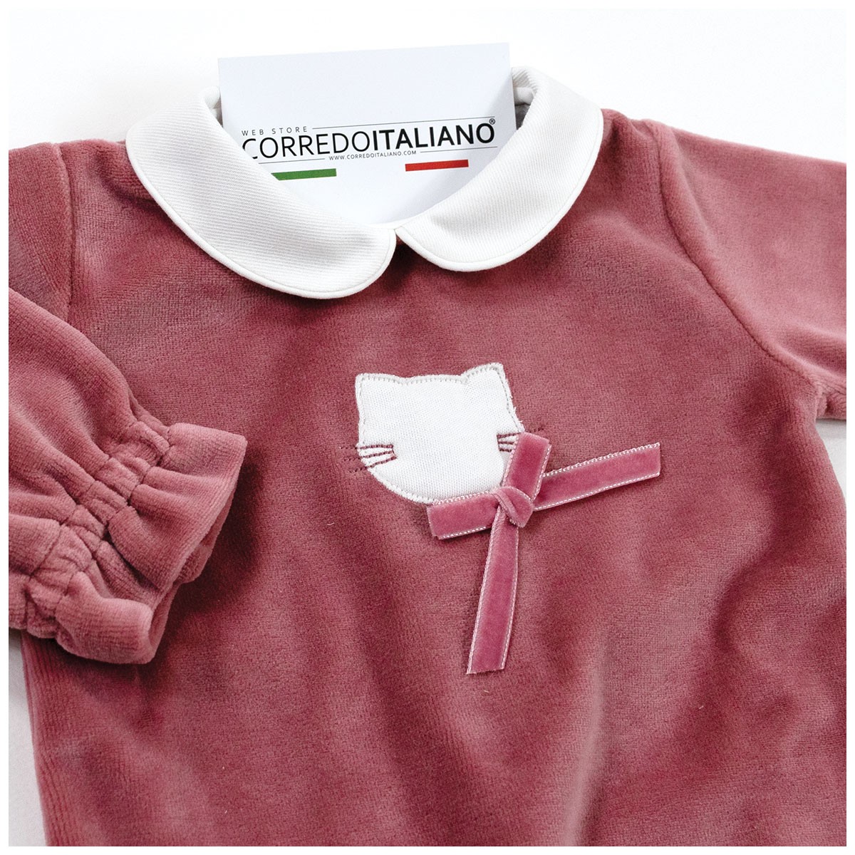 Embroidered velour sleepsuit with kitten – Coccode' Firenze C62018