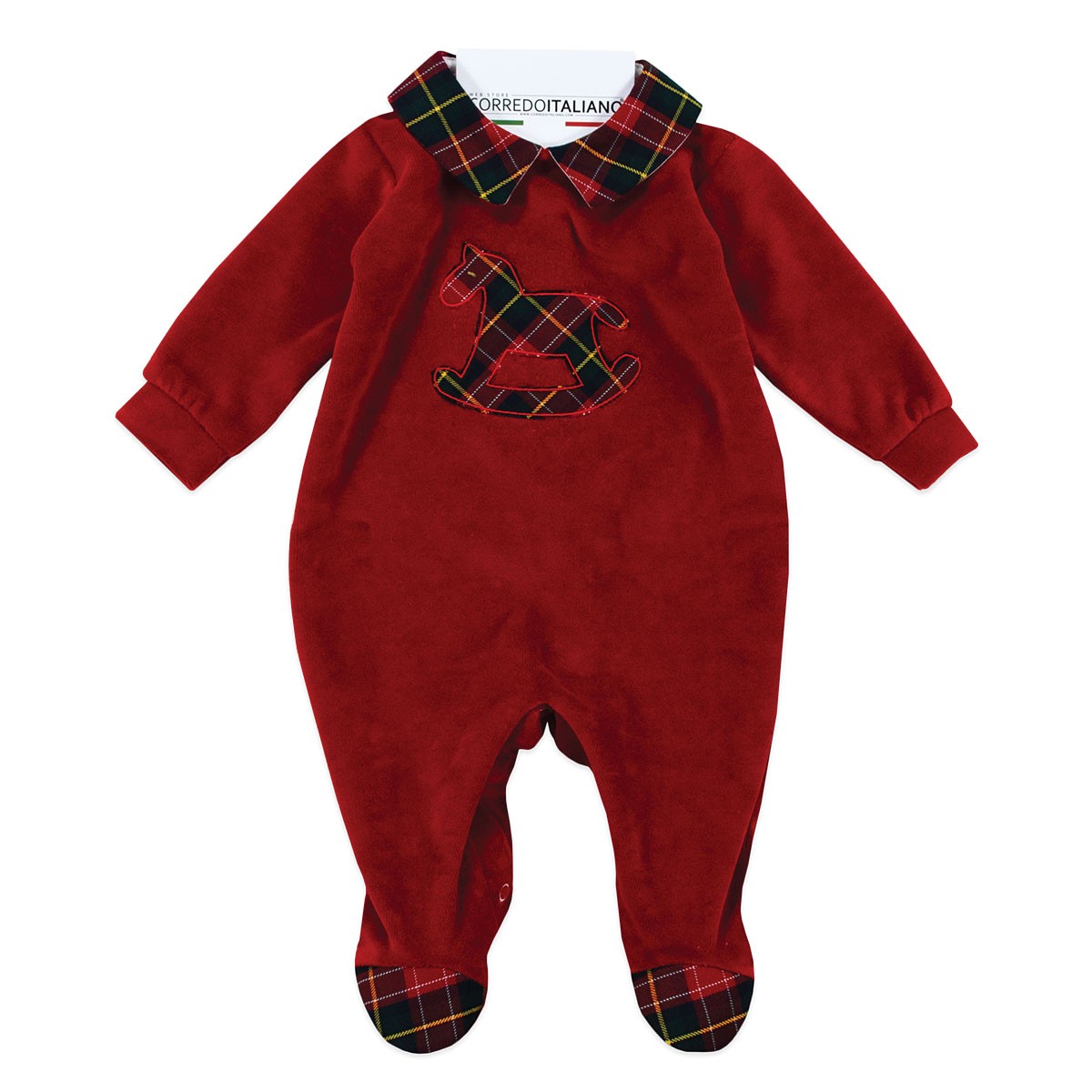 Christmas velour baby romper with tartan collar - Klaiadì K116TC