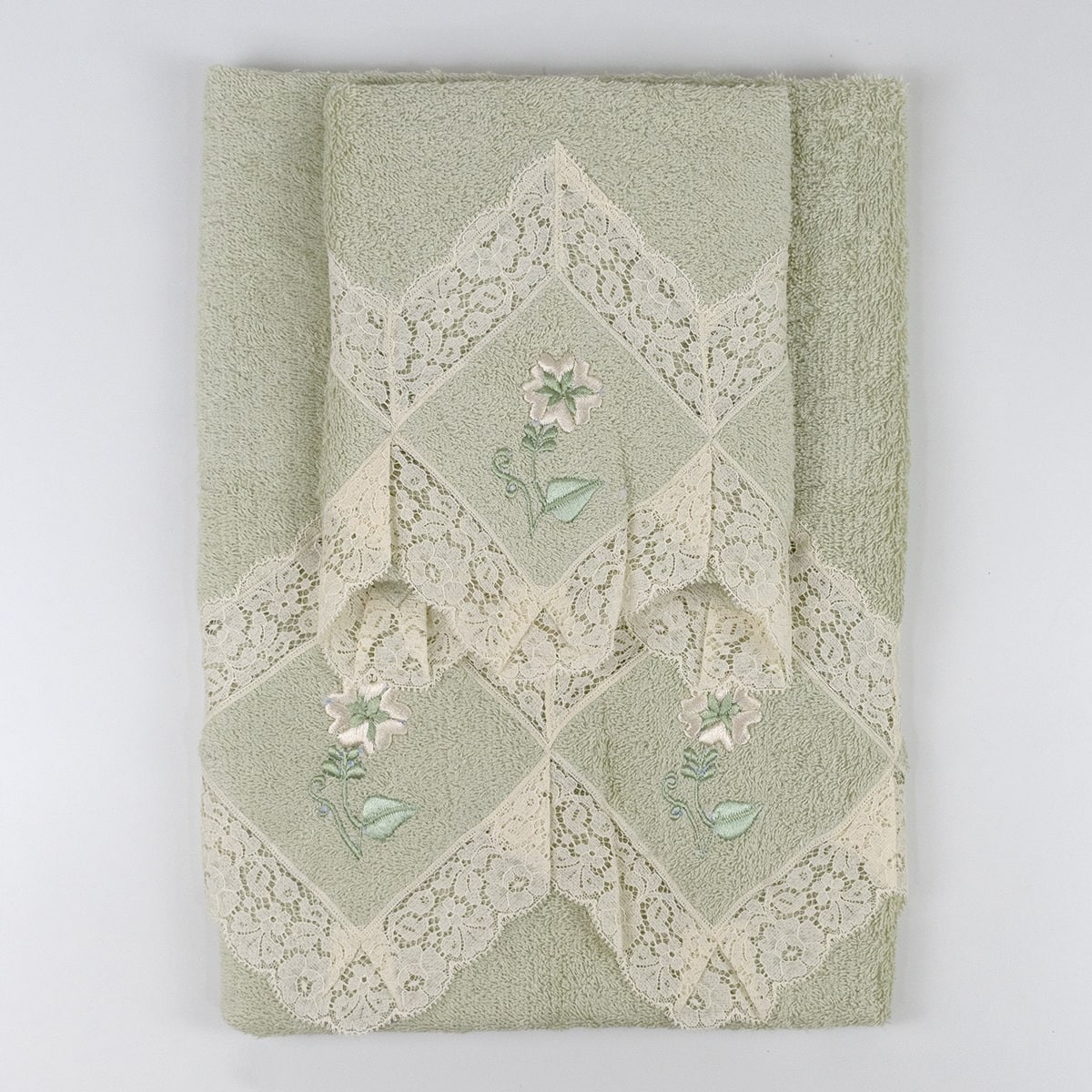 Valenciennes - 1+1 terry towel + guest towel set embroidered with lace