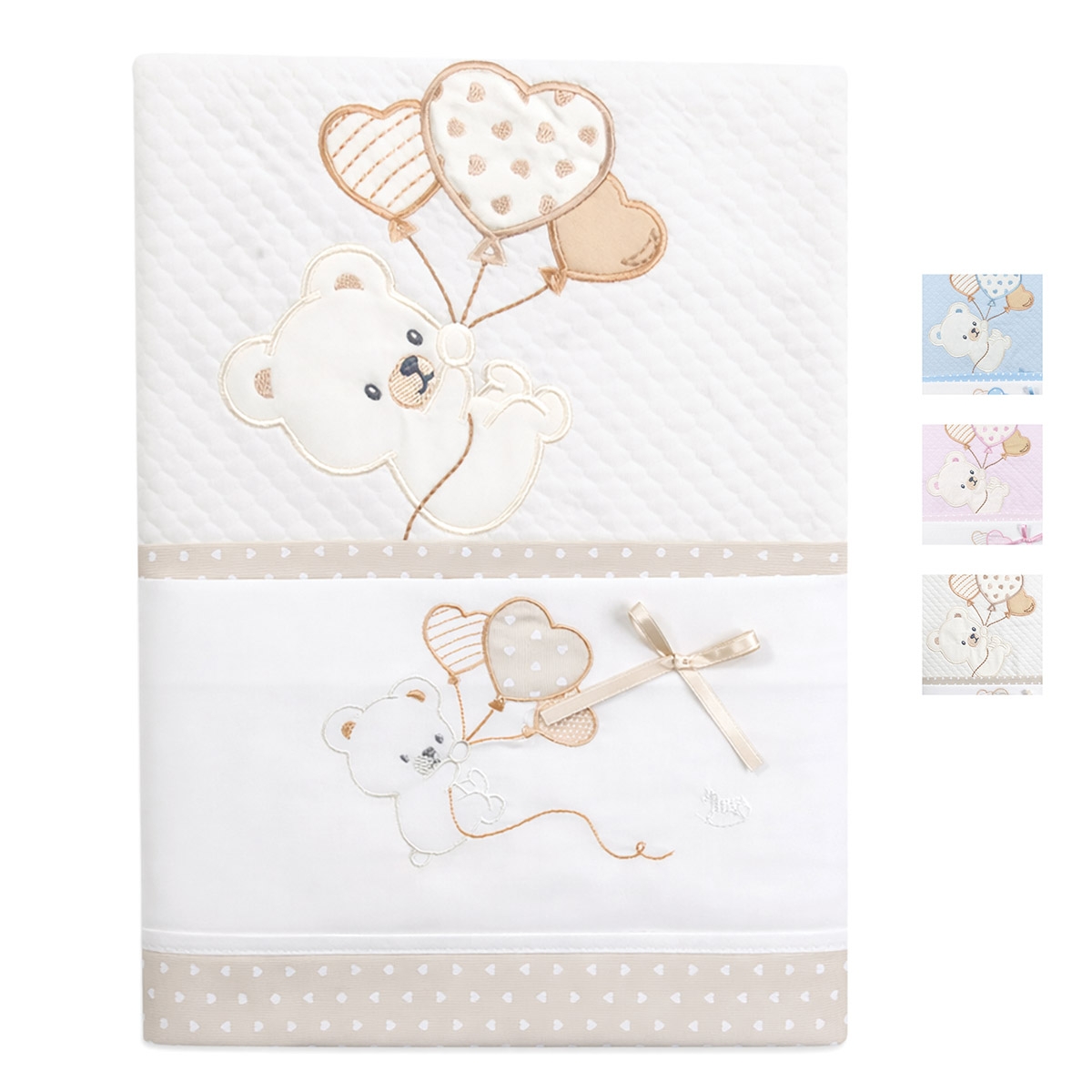 The embroidered baby blanket set with sheets for crib and pram from the Mio Piccolo collection is designed to accompany a newborn’s first moments with softness, delicacy, and refined style. Ideal for dressing a crib, pram, or carrycot, this coordinated set combines everyday practicality with aesthetic care, enhancing the baby’s rest with soft fabrics and embroidered details with a tender and elegant feel. It is a complete solution for those looking for high-quality baby bedding, able to offer comfort, protection, and a perfectly coordinated look for a newborn layette.