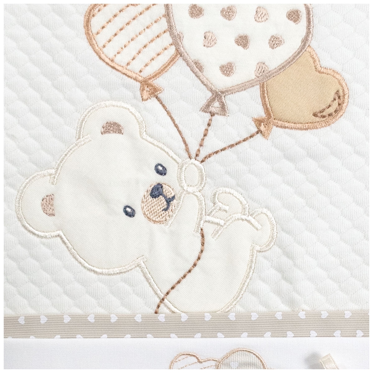 The selected materials are designed for contact with a newborn’s delicate skin. The fabric feels soft, comfortable, and suitable for encouraging a pleasant sense of well-being during sleep. The quality of baby bedding is a key element in a newborn layette, especially when choosing sheets and blankets for crib and pram intended for frequent use.