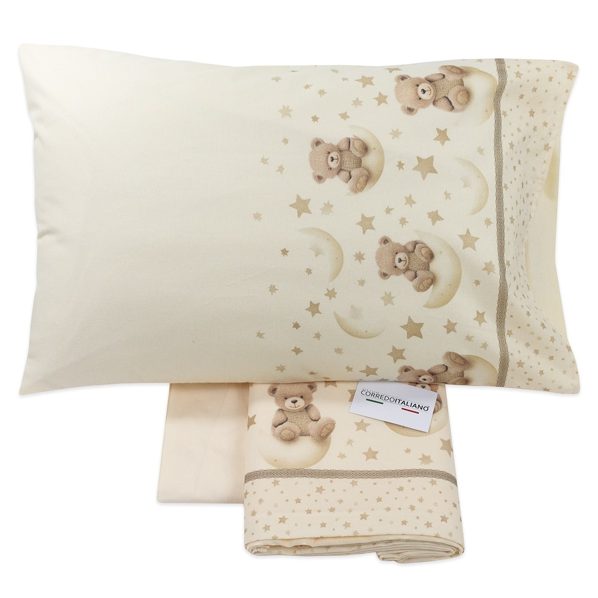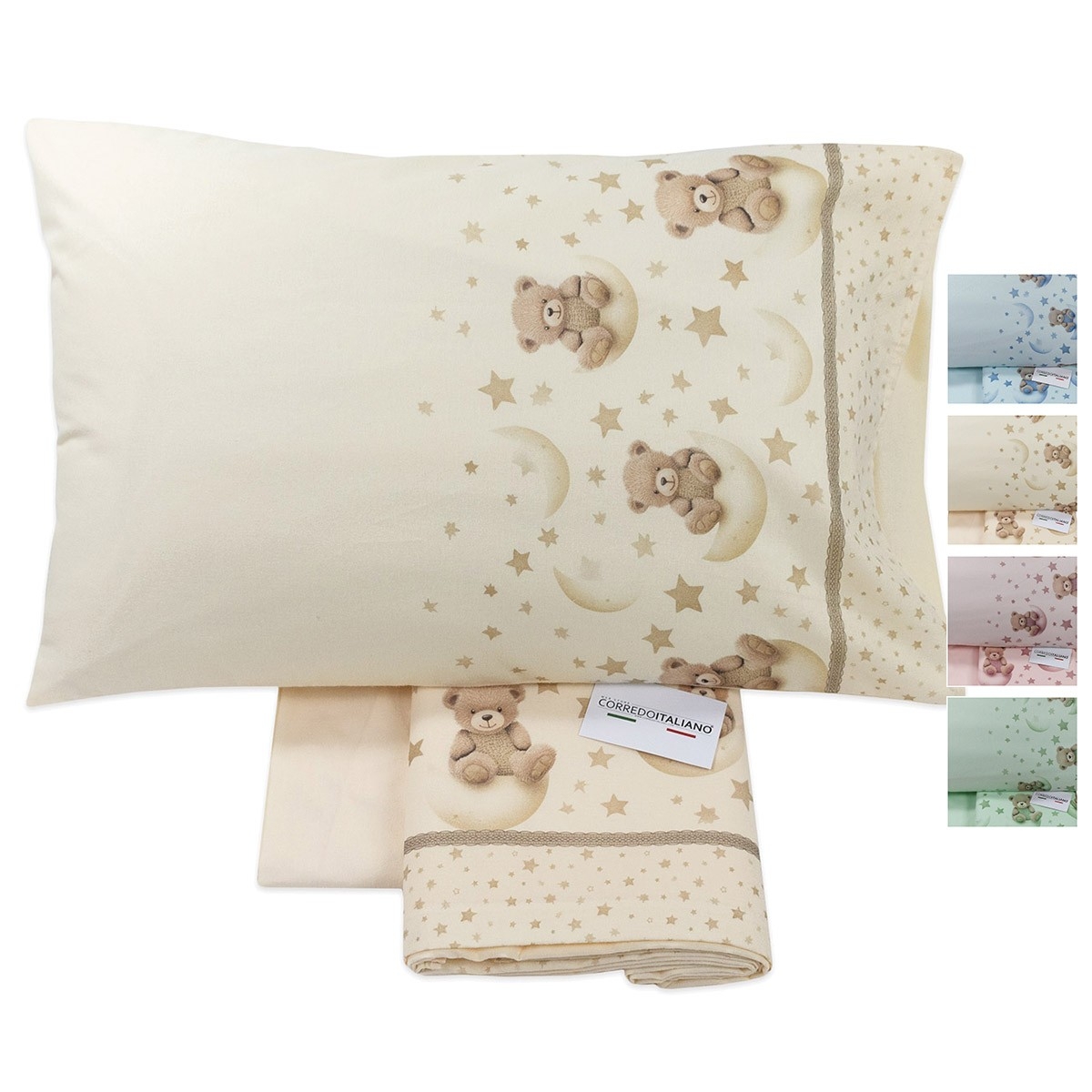 If you are looking for Italian flannel sheets for babies, the Corredo Italiano set with a bear on a crescent moon is the perfect choice: it combines the quality of Italian craftsmanship with a tender and reassuring design, created to cradle your baby night after night.