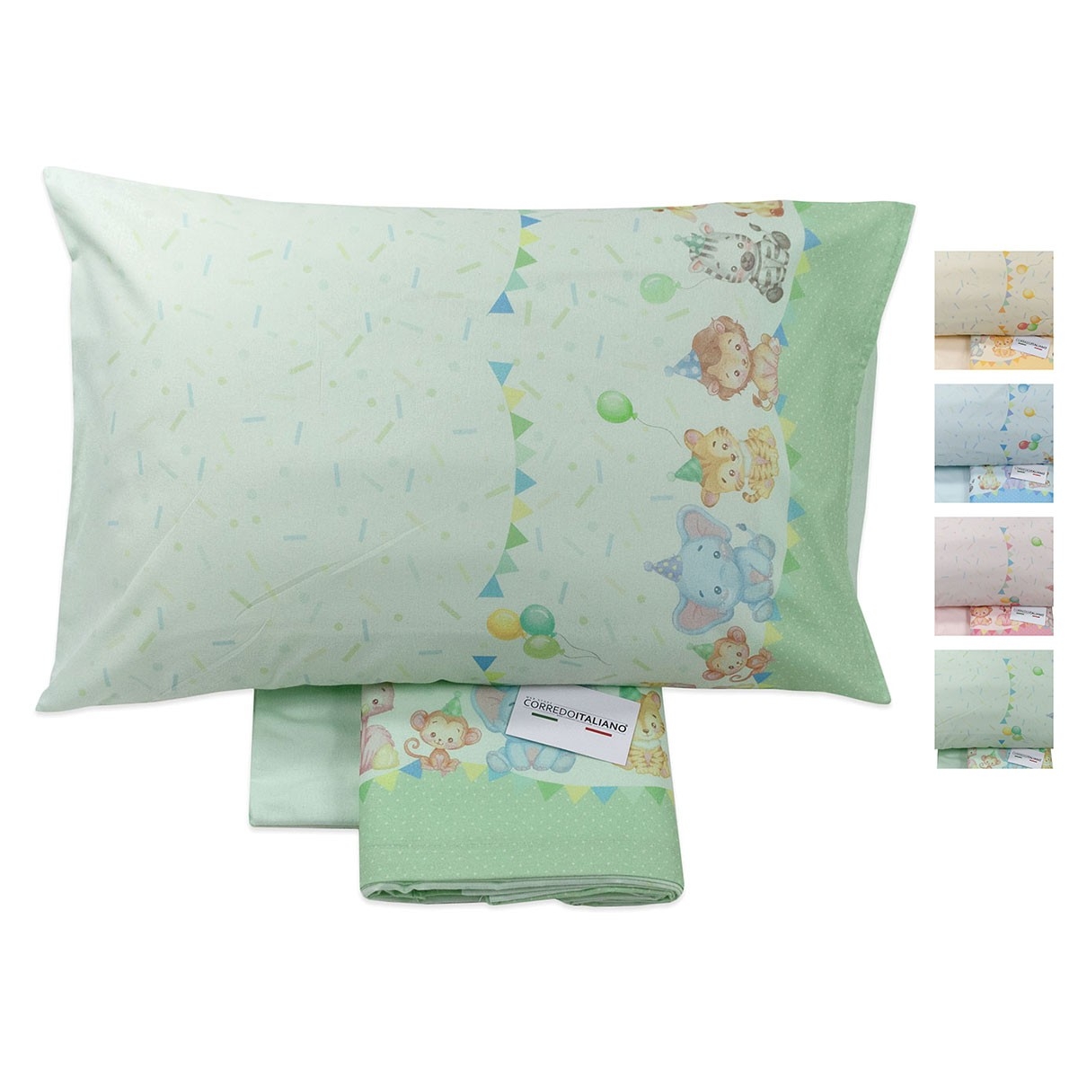 Animal Party Baby Cot Sheet Set in Pure Cotton Flannel – Corredo Italiano Collection