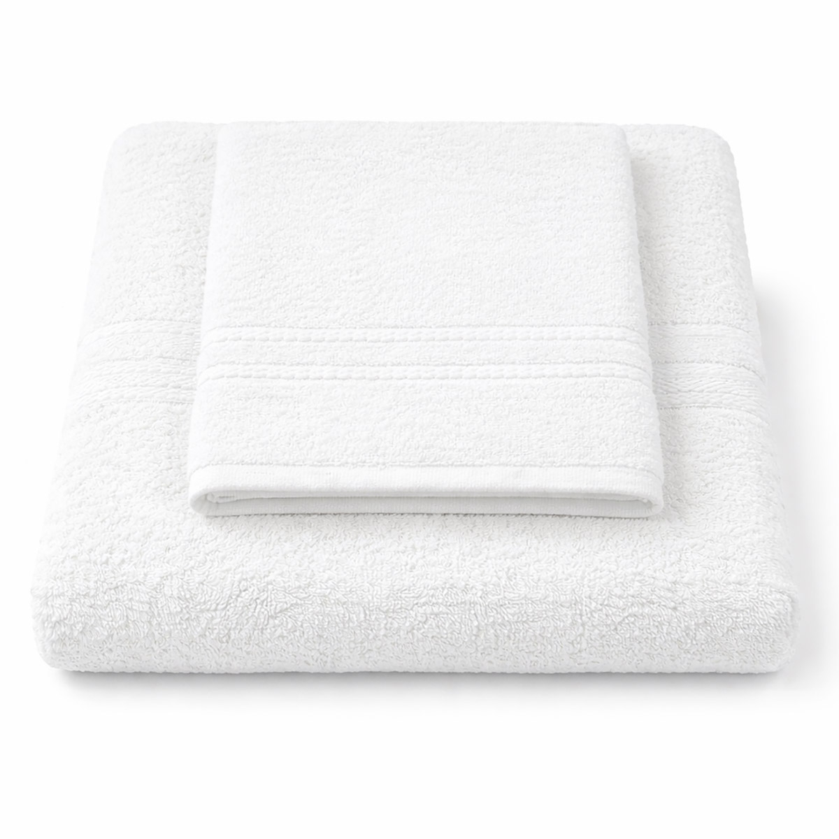 Set of Professional White Hotel Towels 500 GSM - 1 Face + 1 Guest - Hotellerie