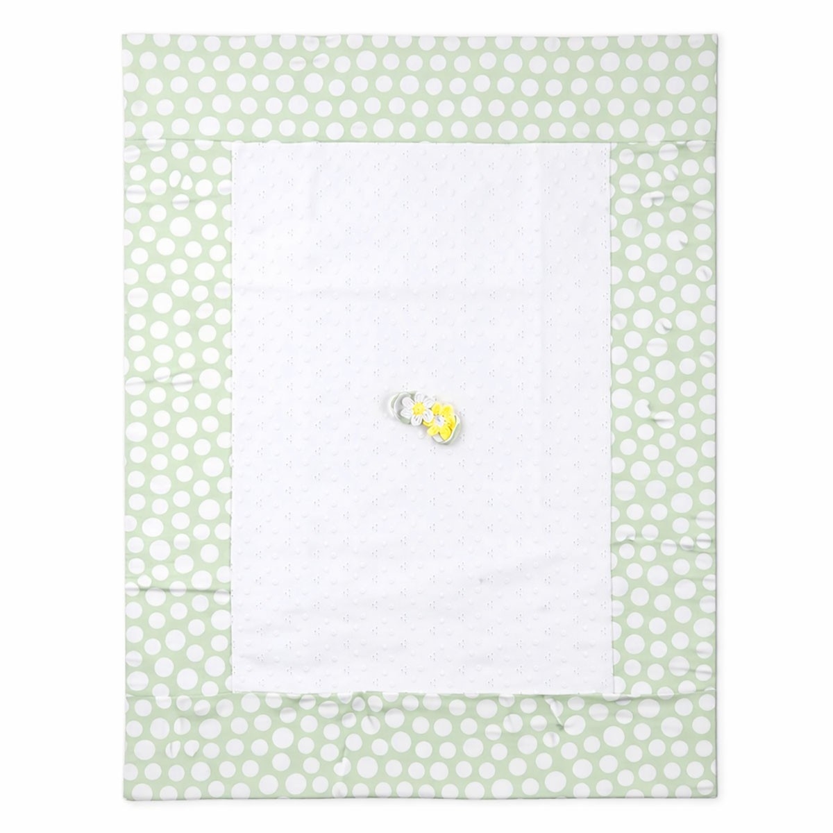 Le Chicche San Gallo Cotton Blanket for Cradle – Sage Green Polka Dots with Floral Detail