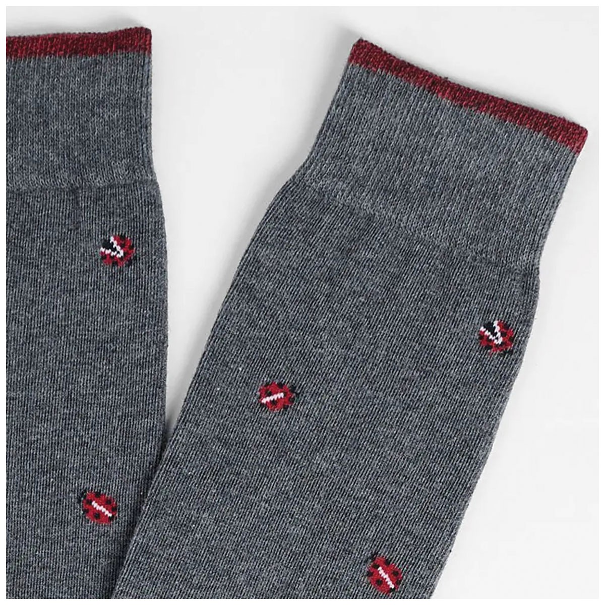 Men's Perofil winter socks in warm grey cotton with a ladybug pattern