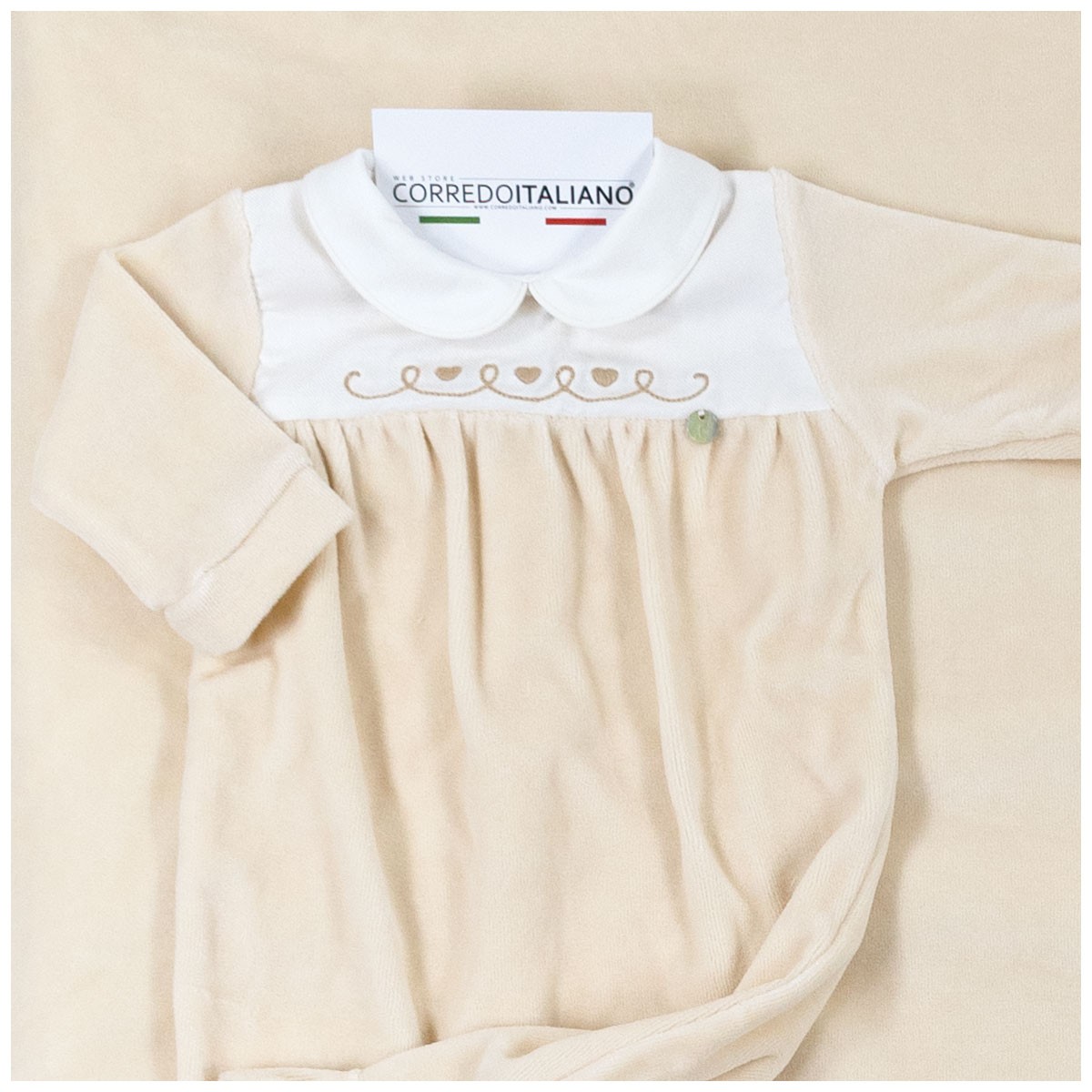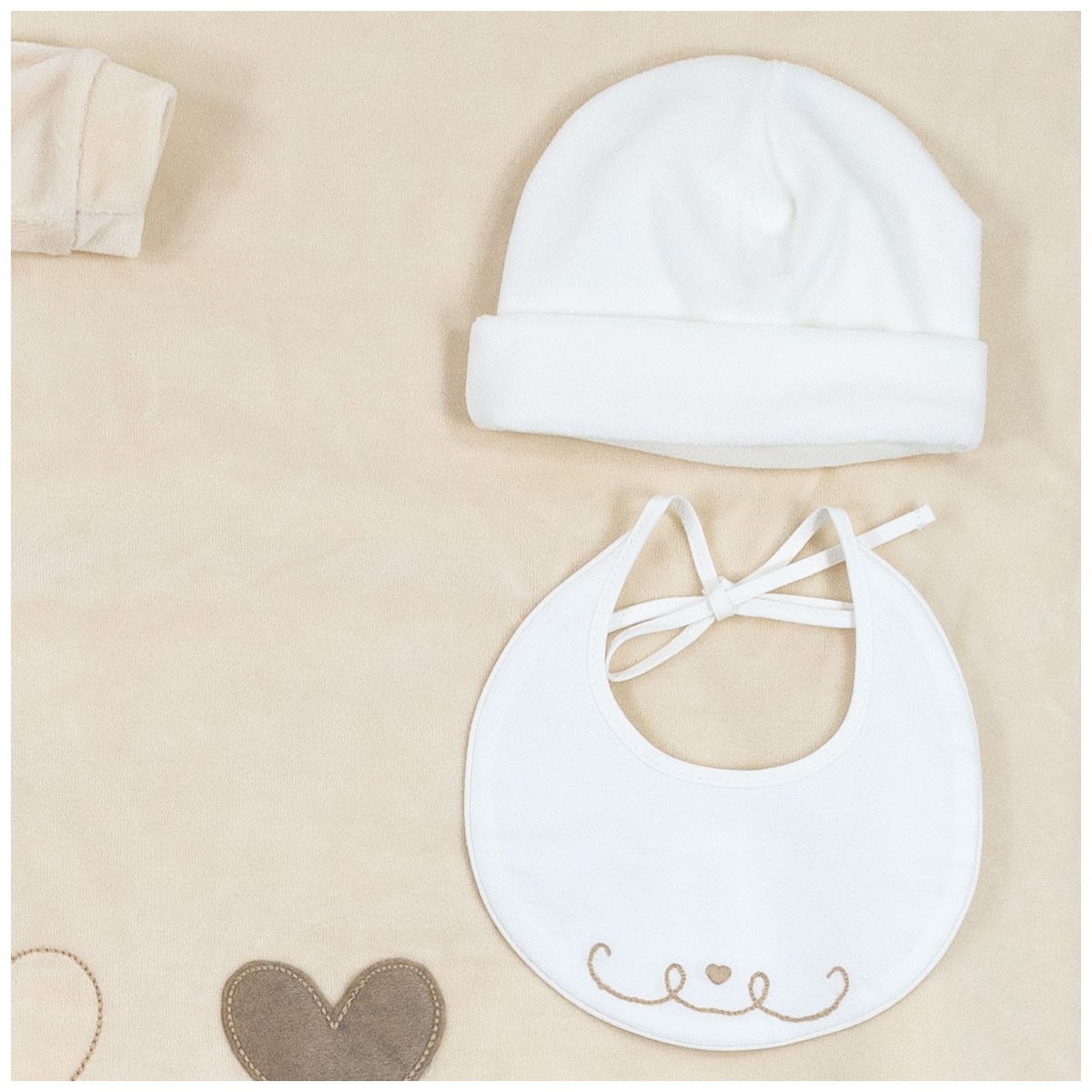 The essential and refined design with embroidered little hearts makes this Coccode' chenille layette set with hearts a must-have for every new mom looking for elegance and comfort in her baby’s first days.