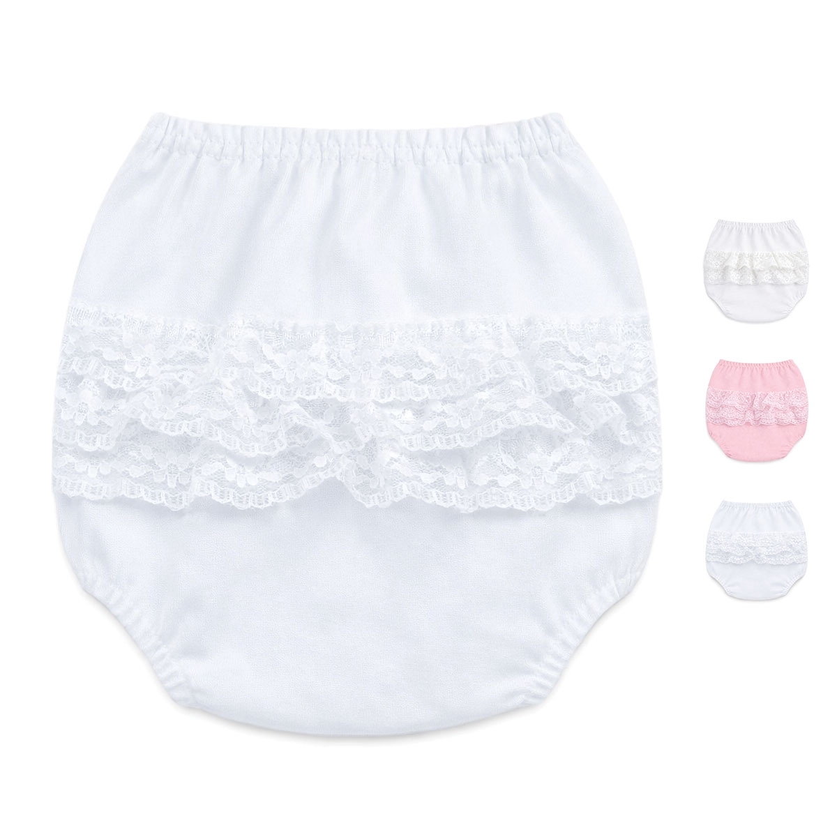 Baby Girl Baby Bloomer Diaper Cover in Cotton with Valencienne Lace – Made in Italy
