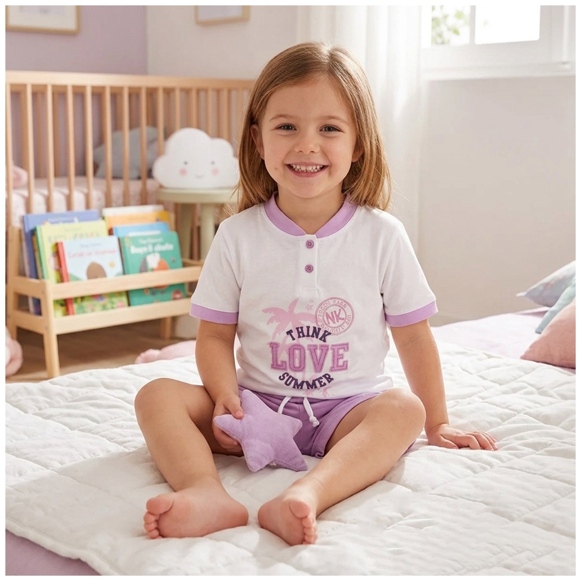 These girls’ short pajamas combine comfort, quality materials, and a fresh style designed especially for children. They are perfect both for nighttime sleep and for relaxing moments in the evening, offering freedom of movement and a comfortable fit that naturally follows every movement.