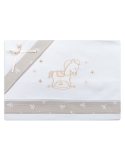 Veste perfettamente il materasso, senza fare alcuna grinza. Il tessuto è in spugna jersey idrofila, di cotone. È inoltre certificato Oeko-Tex.