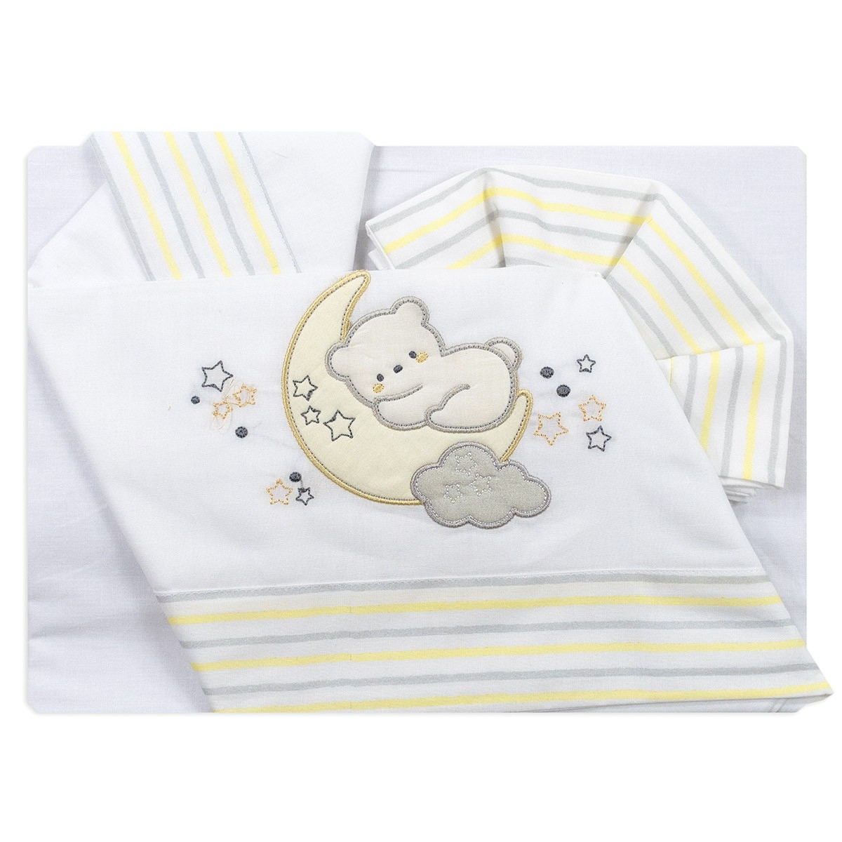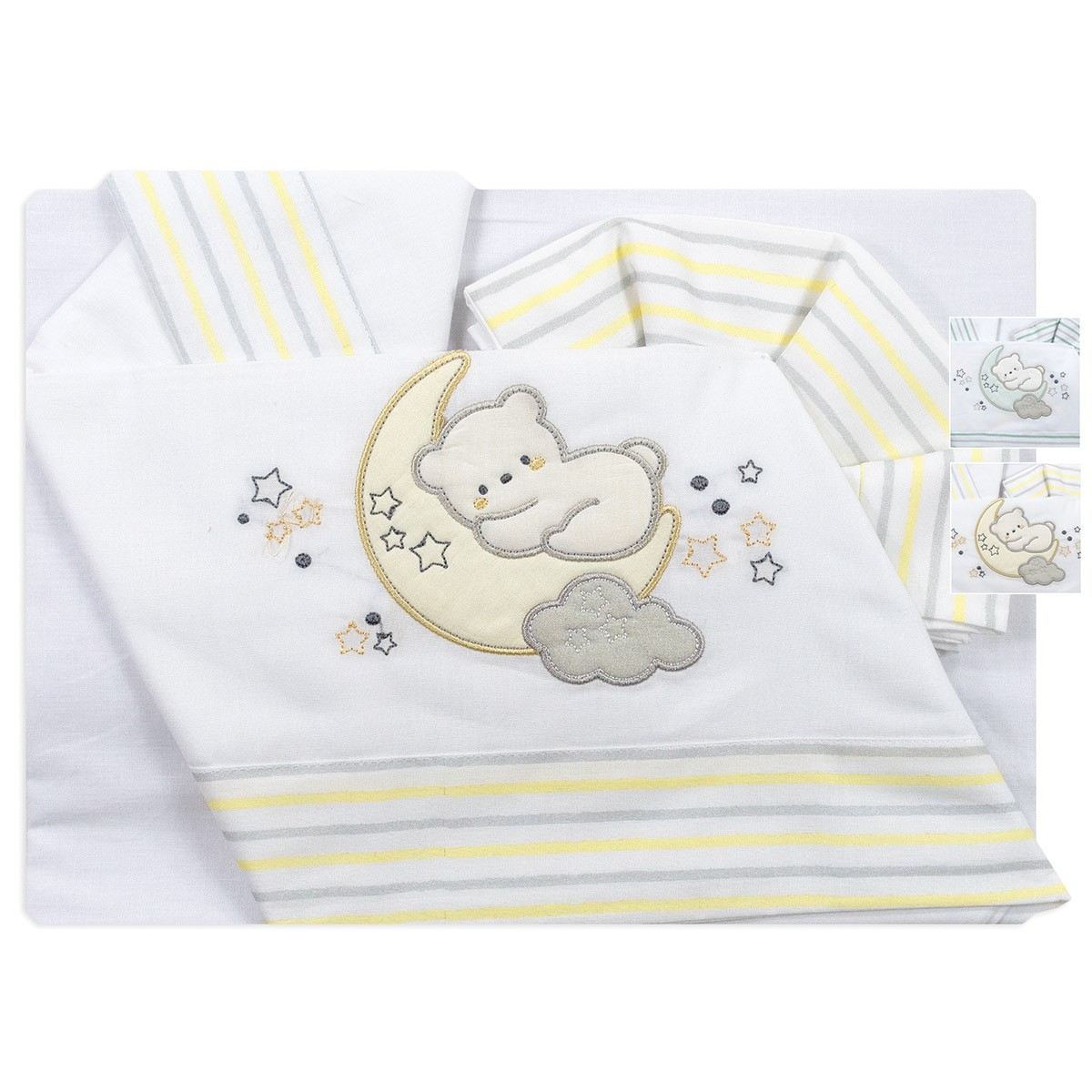 Bruco Bruco Cradle Sheet Set with Teddy Bear Embroidery