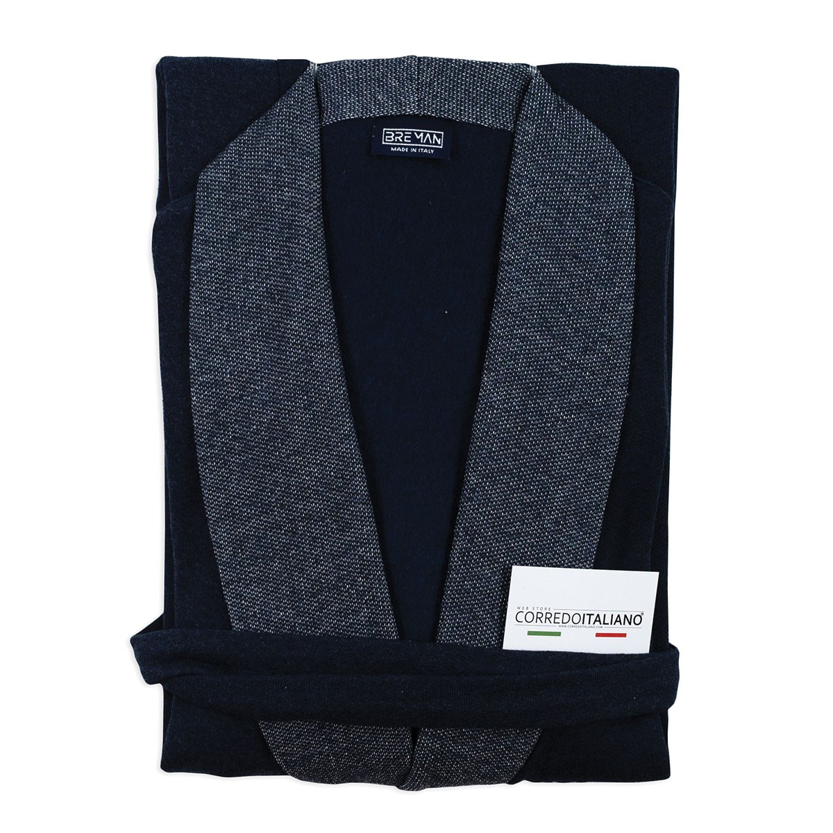 Discover the pleasure of home relaxation with the Men’s Dressing Gown from the Breman collection, designed for those who want to combine elegance and comfort even in the most private moments of the day. Made from a blend of 50% cotton and 50% acrylic, it provides warmth without being heavy, offering softness and breathability. The shawl collar design, adjustable waist belt, and refined ribbed texture add a touch of style without compromising practicality. Perfect to wear at home for moments of pure well-being.