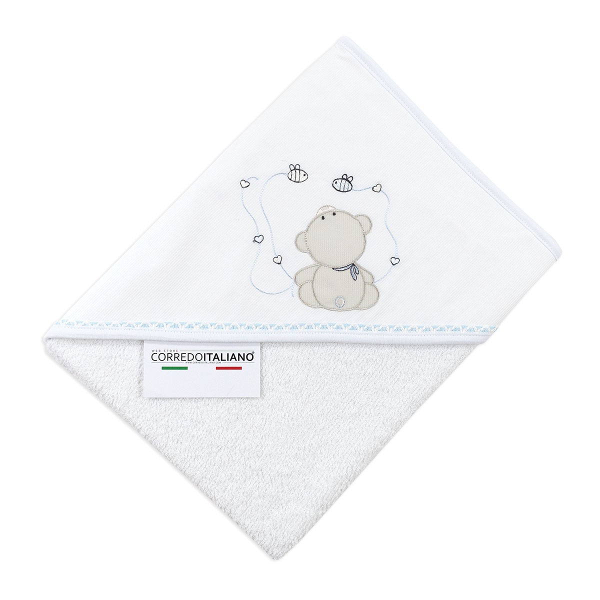 Made of pure cotton terry cloth and embellished with an adorable bear and bees embroidery, this hooded embroidered towel ensures maximum absorbency and softness on the delicate skin of newborns.