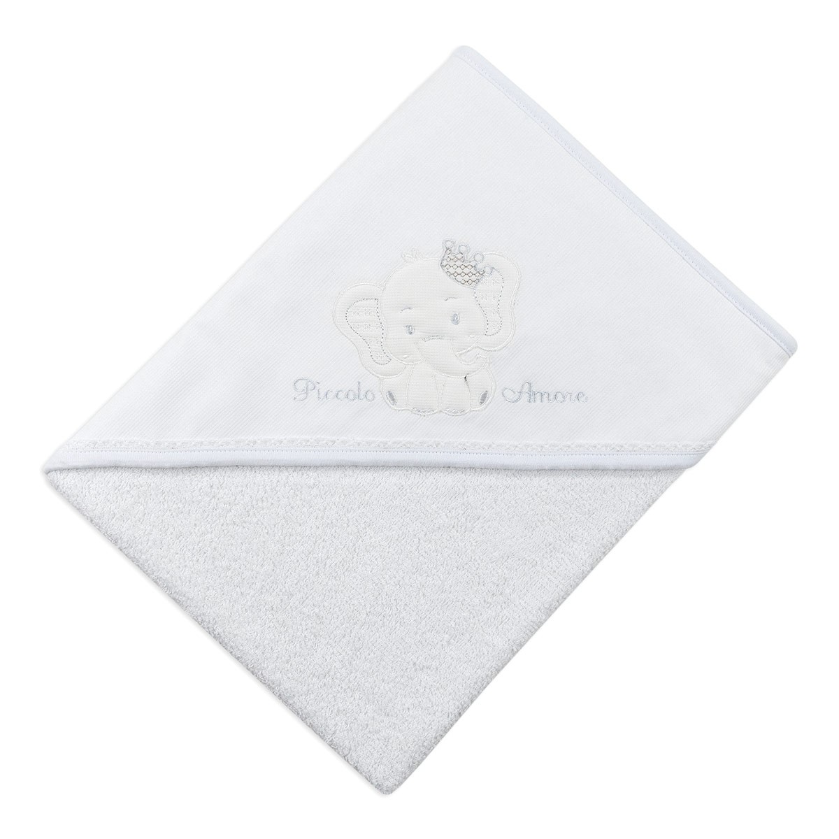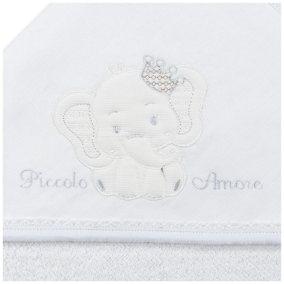 This delightful triangular hooded embroidered bathrobe from the Dolci Sogni line is a perfect combination of comfort and sweetness for little ones.