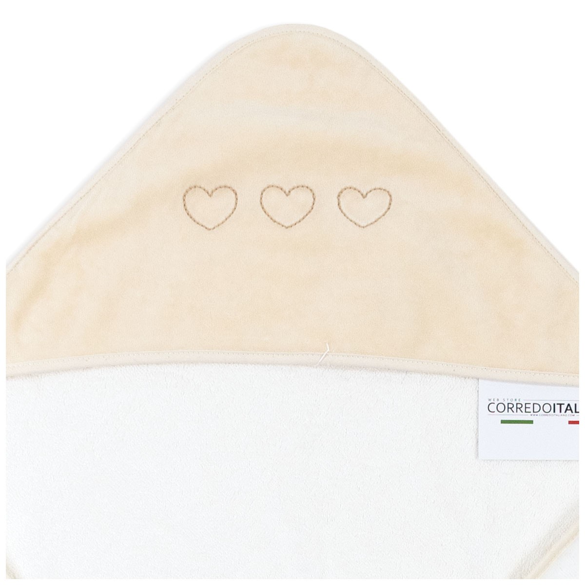 Soft, practical and cozy: the hooded baby bath towel by Coccodè Firenze is designed for your newborn’s well-being during bath time. Made of high-quality terry cloth, it quickly dries the baby’s delicate skin, preventing sudden changes in temperature and providing a pleasant feeling of comfort. The hood with a sweet heart embroidery protects the head and hair, keeping them warm. An essential accessory for the first months of life, also perfect as a gift for a newborn or to enrich the baby’s layette.