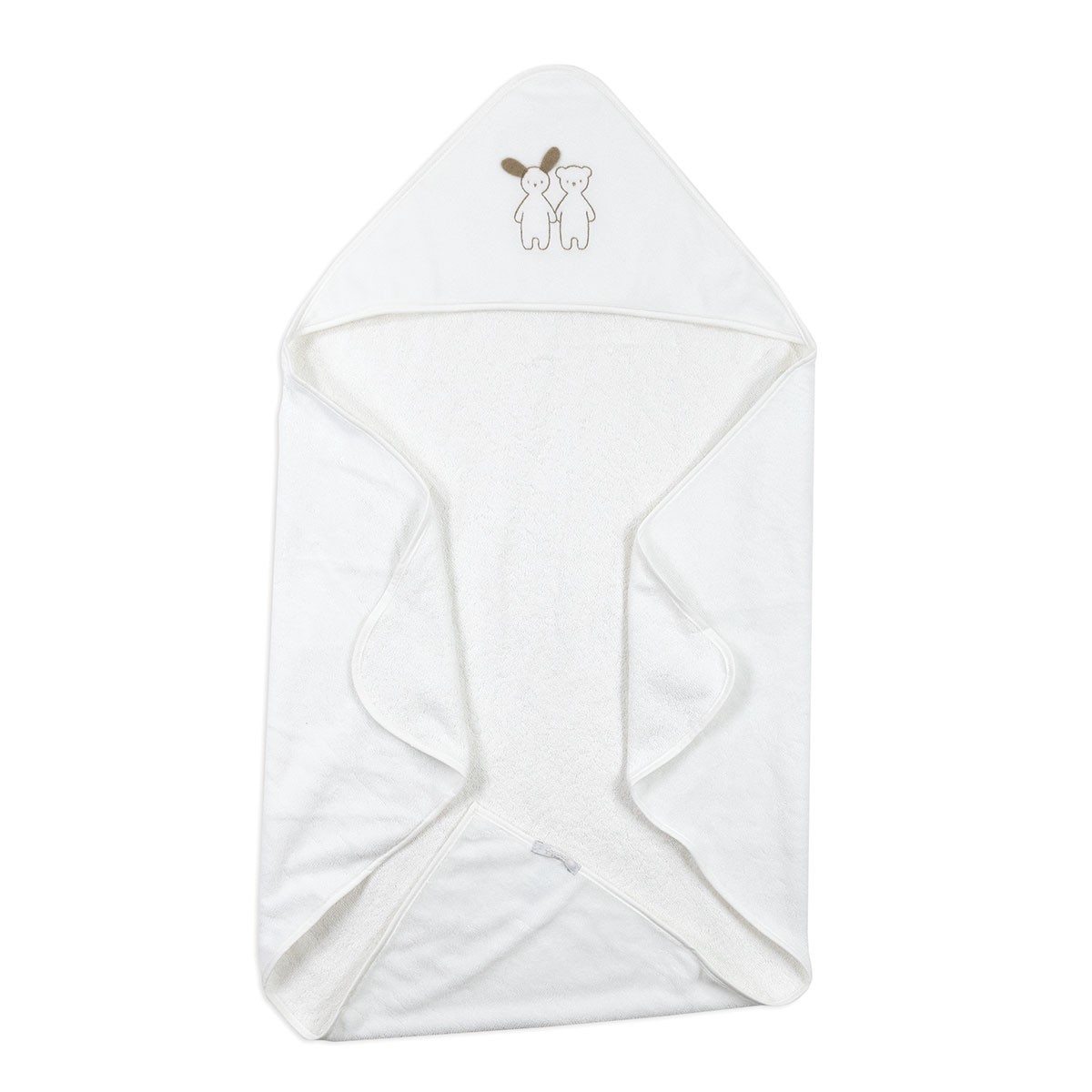 This cute triangle bathrobe is enriched with a nice embroidered hood on the corner representing a bear.