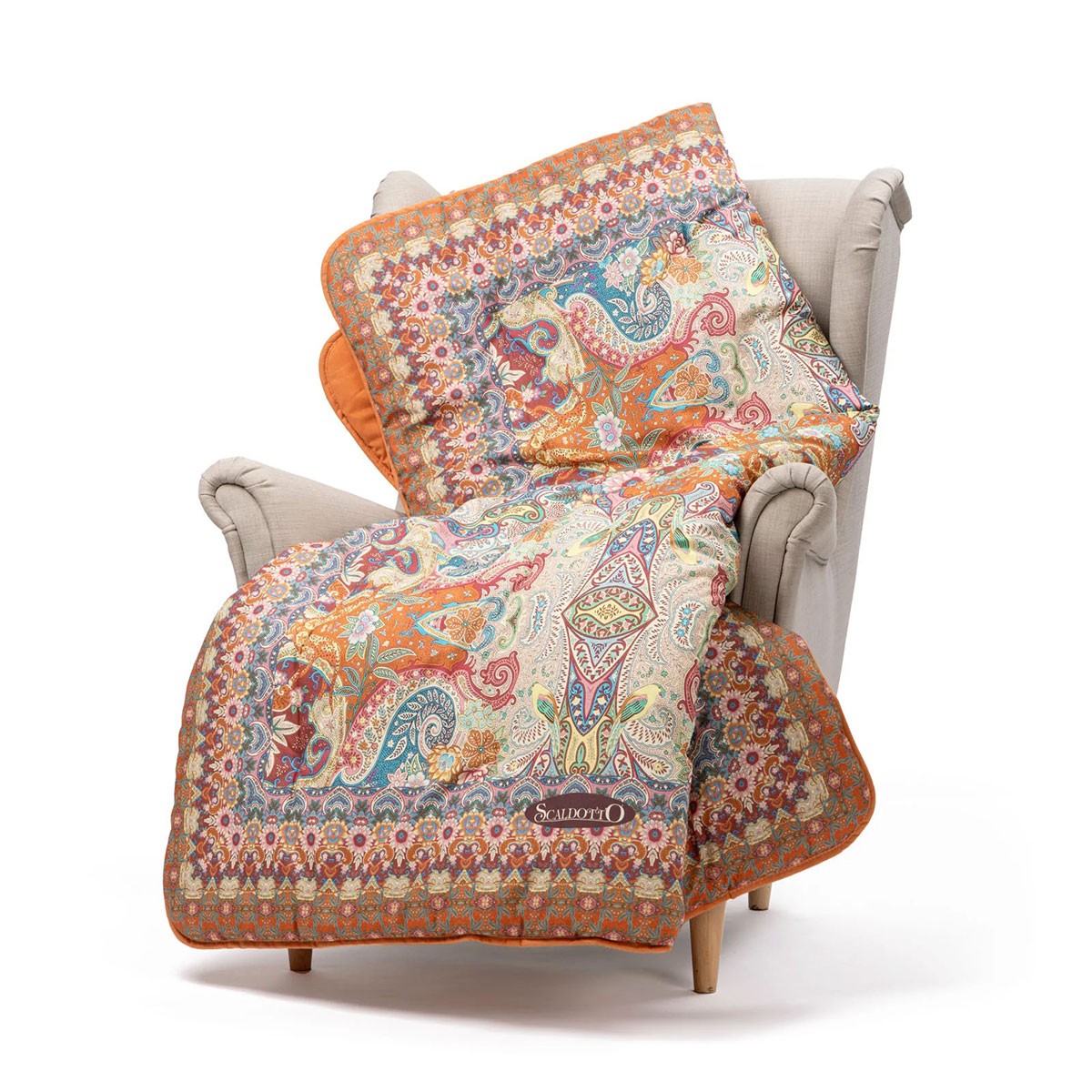 The Caleffi quilted throw model Ahlambra is the perfect accessory to furnish any room with style and warmth. Inspired by exclusive paisley and oriental motifs, this quilted throw is not just a blanket, but a real decorative element. Soft, cozy, and durable, it accompanies you during relaxing moments on the sofa or in the bedroom, adding comfort and color to your home. Available in a generous 130x170 cm size, it is the ideal choice for those looking for quality and beauty at a competitive price, especially if you want to buy a Caleffi collection quilted throw.