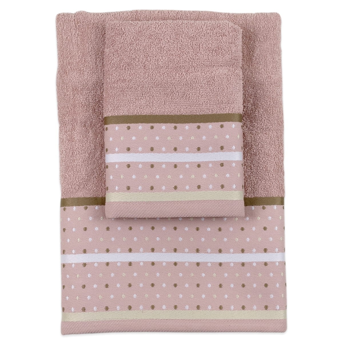 Set di asciugamani 1+1 in tinta unita puro cotone idrofilo con particolare cesello arricchito da ricami points.
