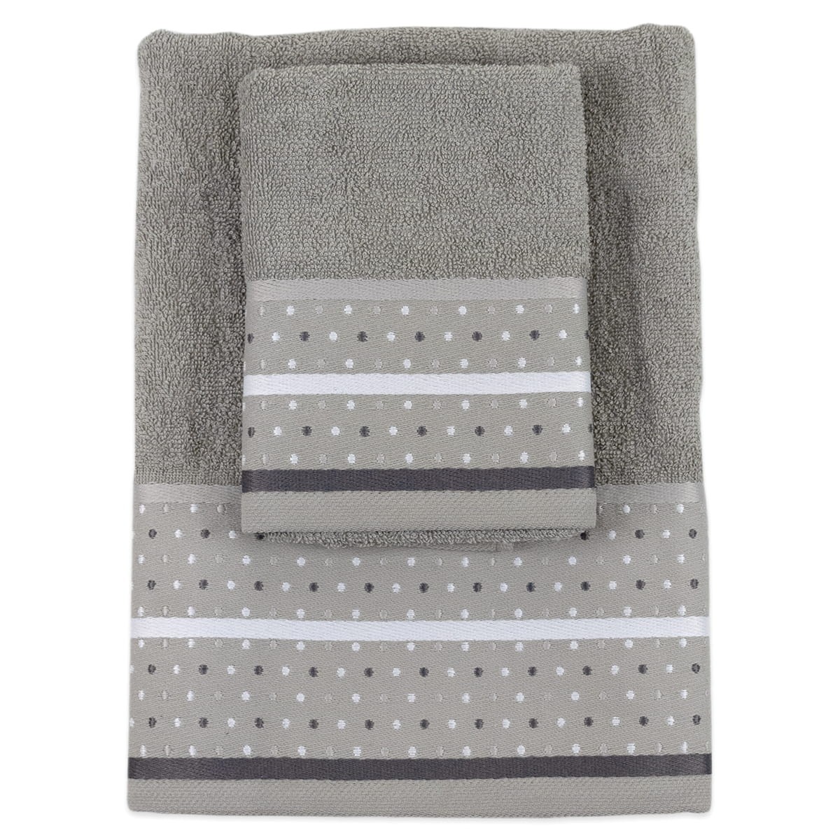 Set di asciugamani 1+1 in tinta unita puro cotone idrofilo con particolare cesello arricchito da ricami points.