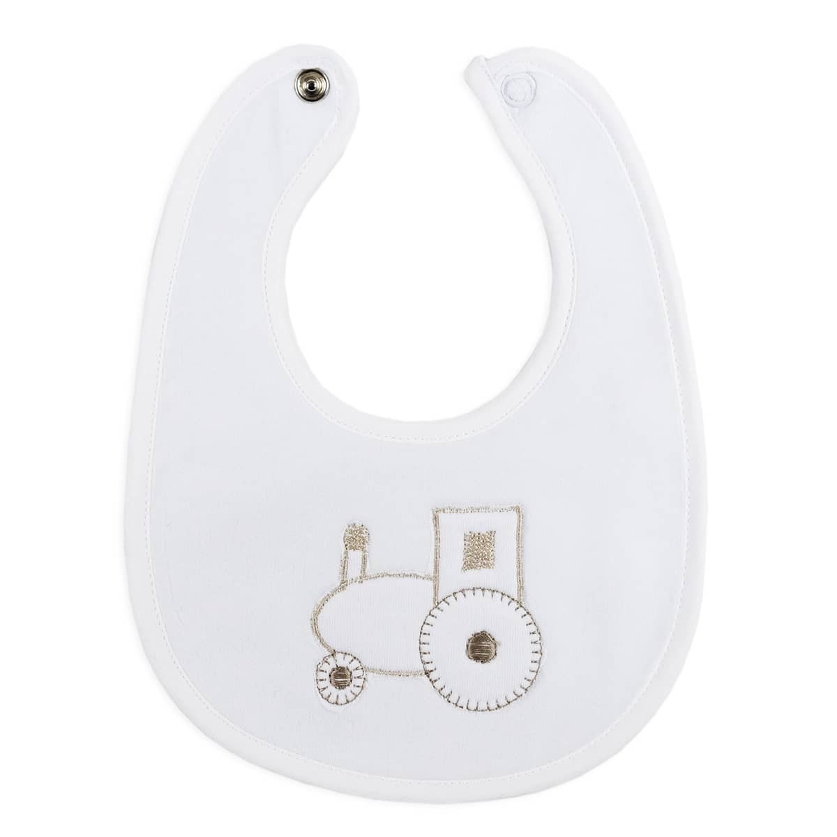 Bavaglino in ciniglia con trenino ricamato e chiusura clip CI1452