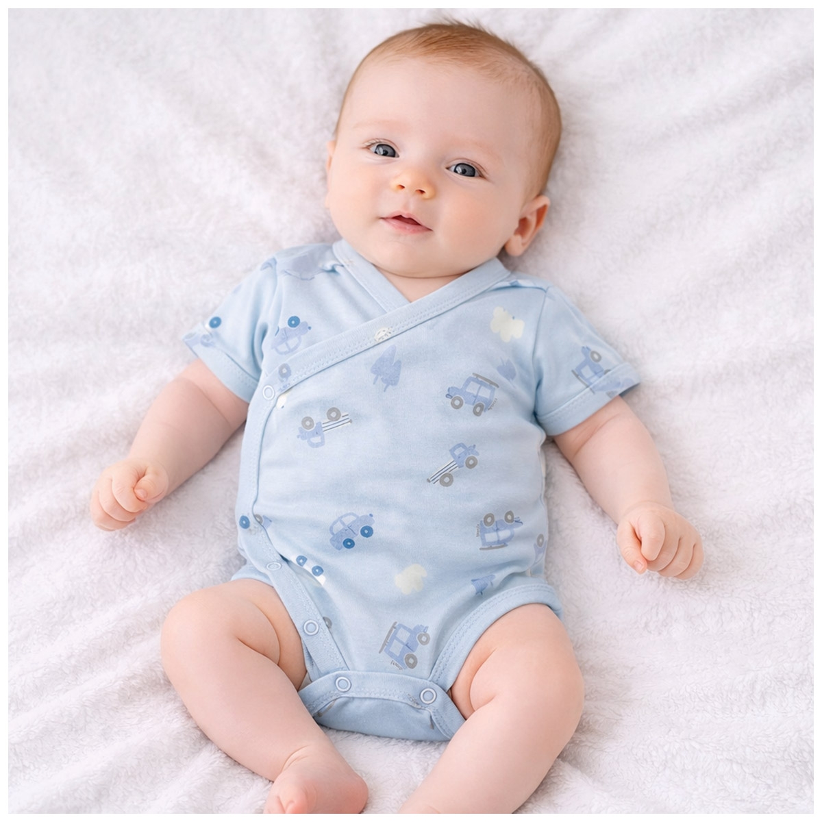 Questo adorabile body a manica corta della collezione Coccodè Firenze è la scelta perfetta per la pelle delicata del tuo bambino. Realizzato in fibra di bamboo leggermente elasticizzata, è incredibilmente morbido e traspirante, offrendo un comfort eccezionale durante tutto il giorno. Il suo design con apertura a kimono e bottoni a pressione lo rende facile da indossare e togliere, semplificando il cambio del pannolino. La fantasia con simpatiche macchinine e alberelli tono su tono aggiunge un tocco di dolcezza e stile, rendendolo un capo essenziale nel guardaroba del tuo neonato.
