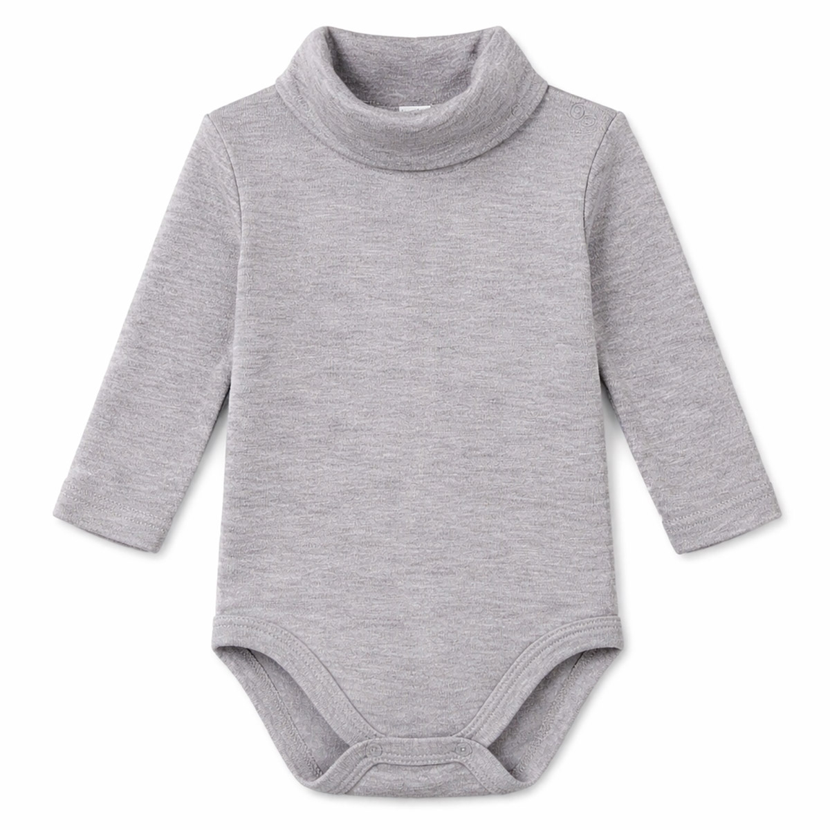 Body neonato a lupetto in caldo cotone garzato, morbido e traspirante, con apertura pratica per il cambio e comfort ideale nei mesi freddi.