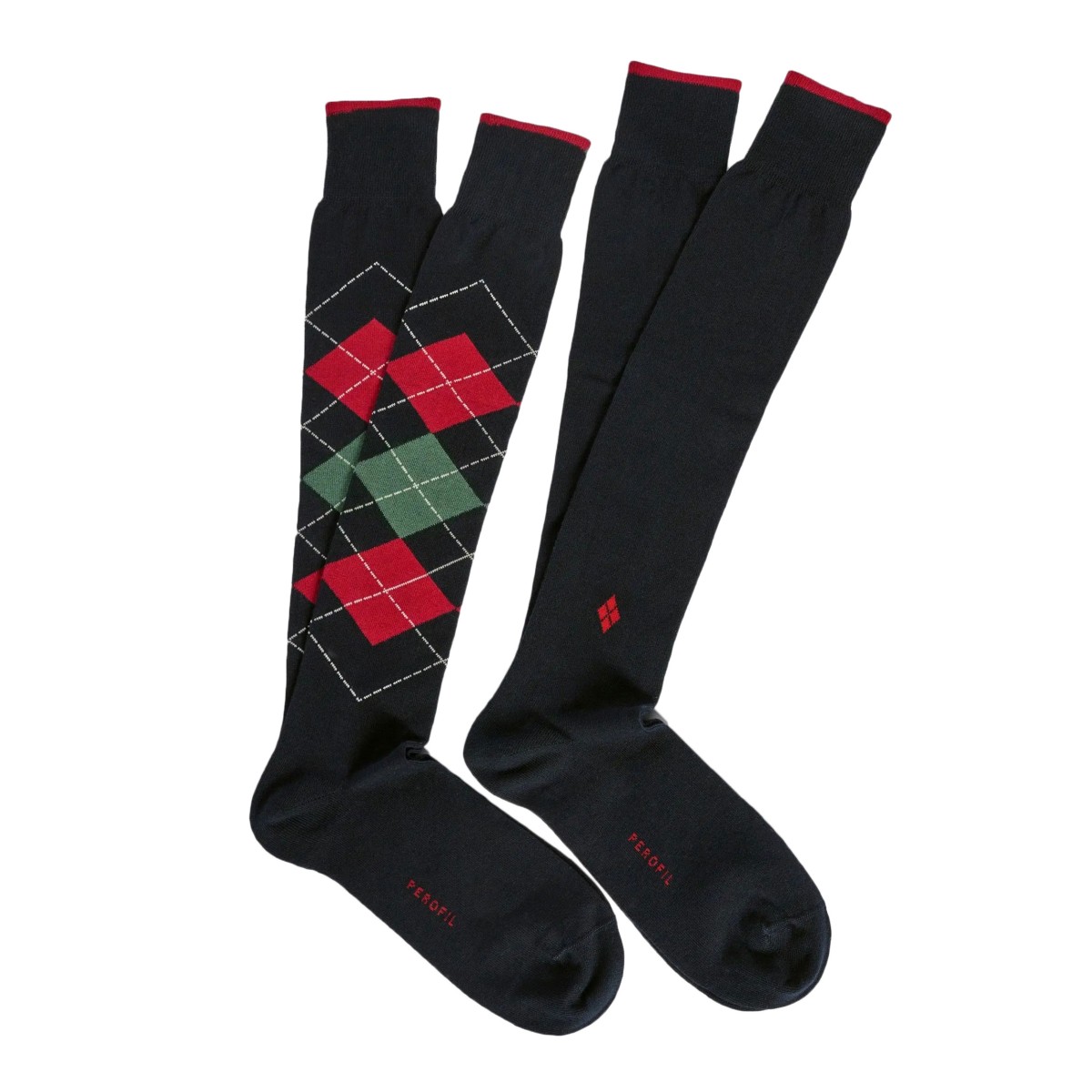 La confezione 2 paia calze invernali Perofil è la scelta ideale per l’uomo che desidera unire comfort, calore ed eleganza. In questo set troverai due paia di calzini lunghi invernali Perofil: uno a tinta unita blu con discreto dettaglio e uno con motivo a rombi nei toni del rosso e del verde, su fondo scuro. Un mix perfetto per alternare stile classico e personalità, senza rinunciare alla qualità Made in Italy che da sempre contraddistingue Perofil.