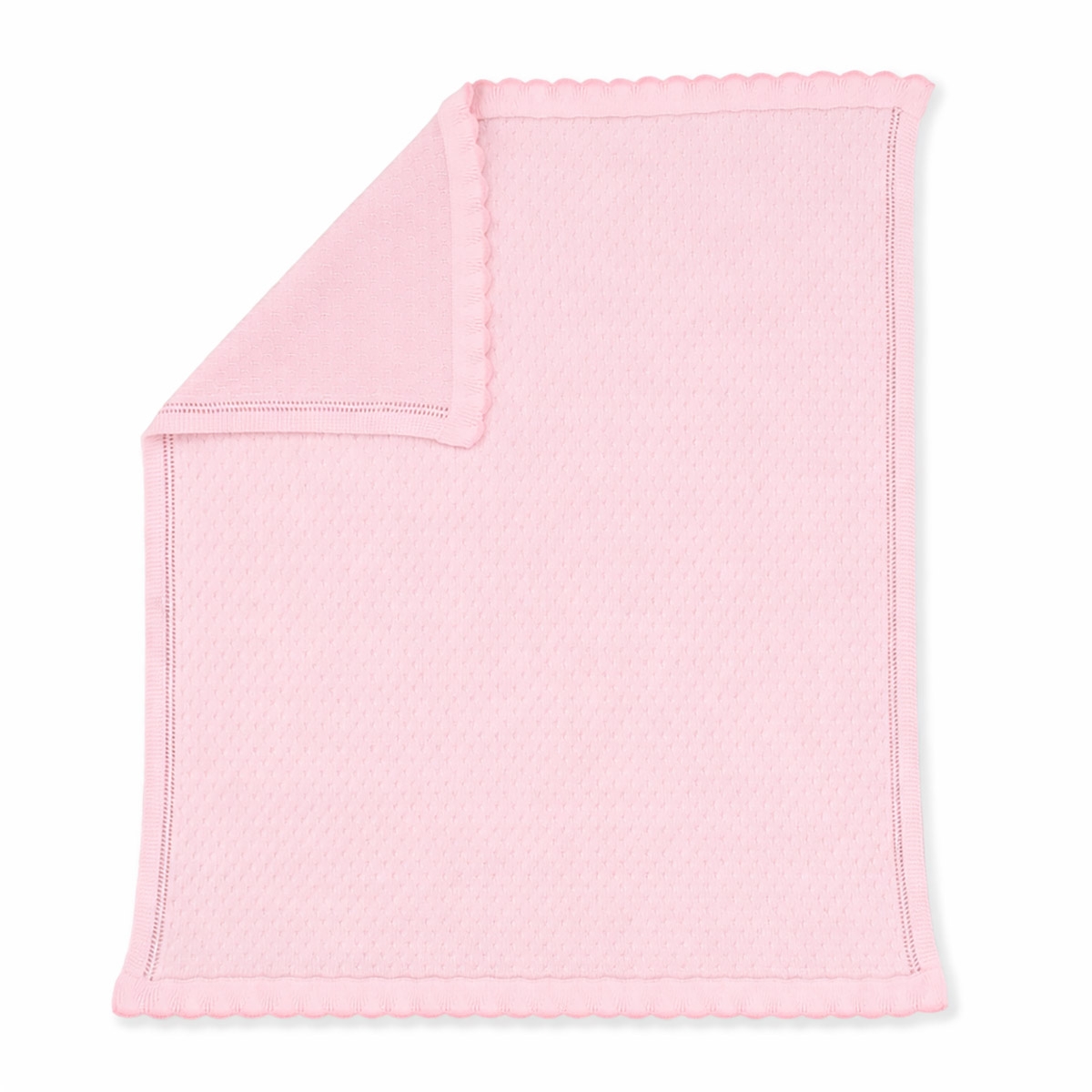 Le linee delicate, la lavorazione tricot e il dettaglio smerlato rendono questa copertina un capo intramontabile, perfetto per accompagnare i primi mesi di vita con dolcezza e stile.