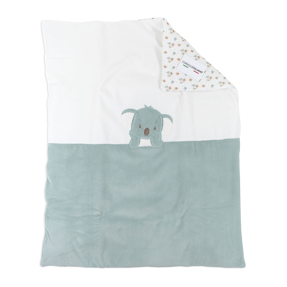 Il design koala, il contrasto verde salvia e bianco e i materiali di alta gamma rendono questa coperta culla di ciniglia un elemento raffinato, utile e irresistibilmente bello.
