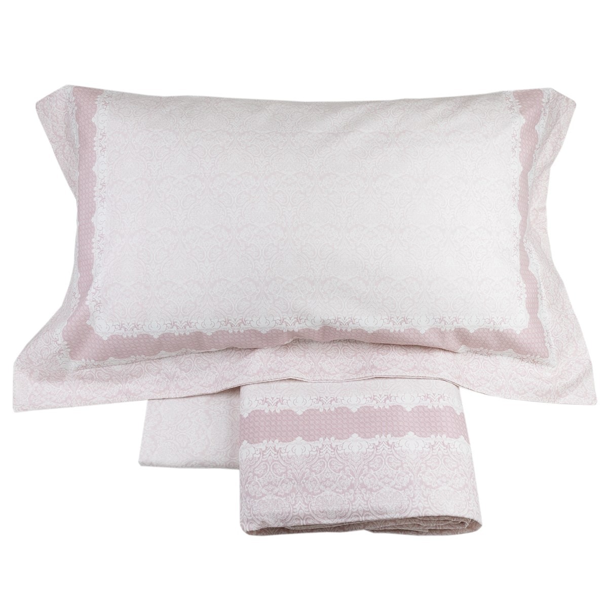 Questo set lenzuola è particolareggiato dalla bellissima fantasia florence design e dal volant a contrasto sia sulle federe che sul bordo lenzuolo.