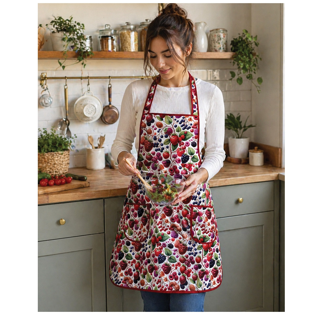 Grembiule cucina con pettorina in puro cotone - Frutti di Bosco - Corredo Italiano