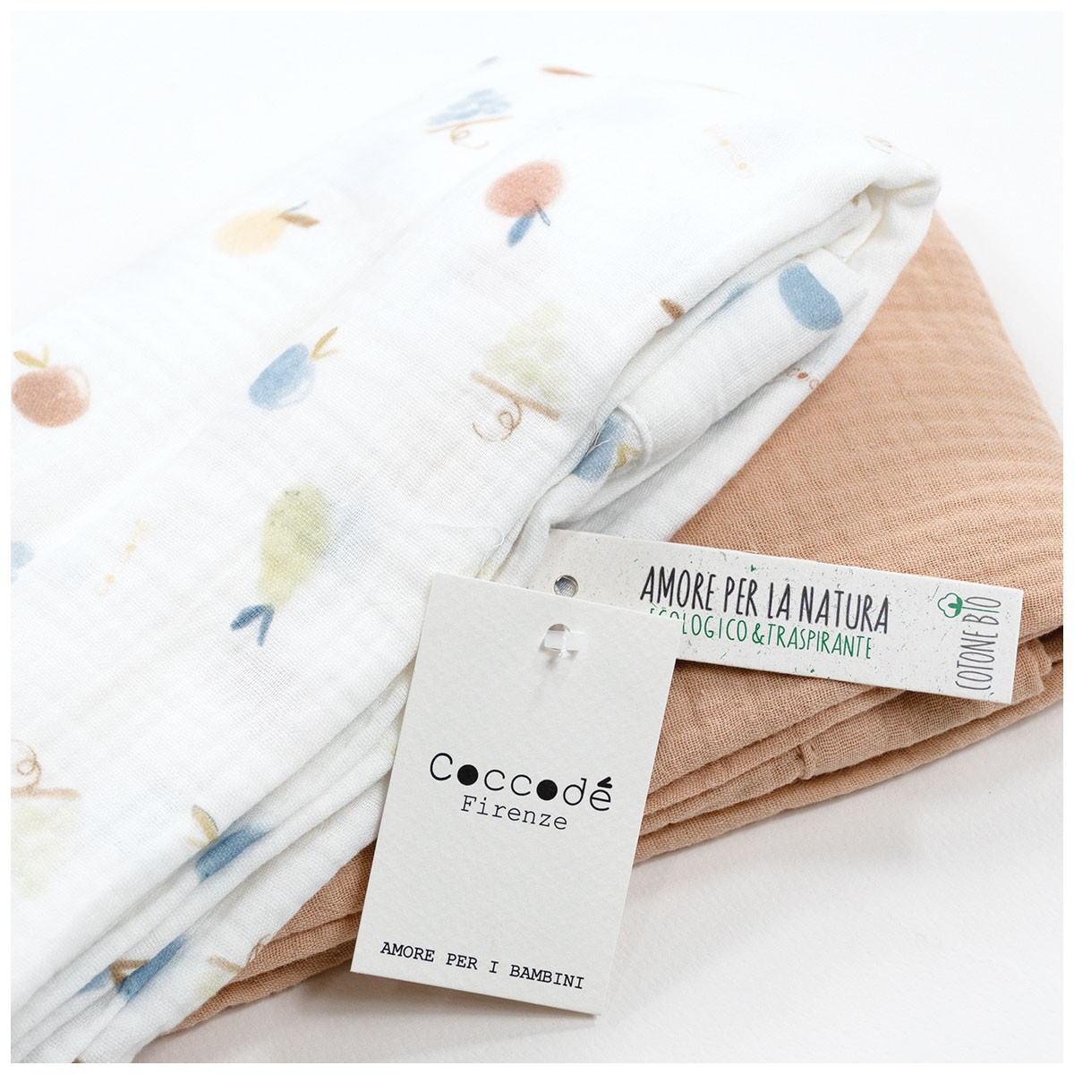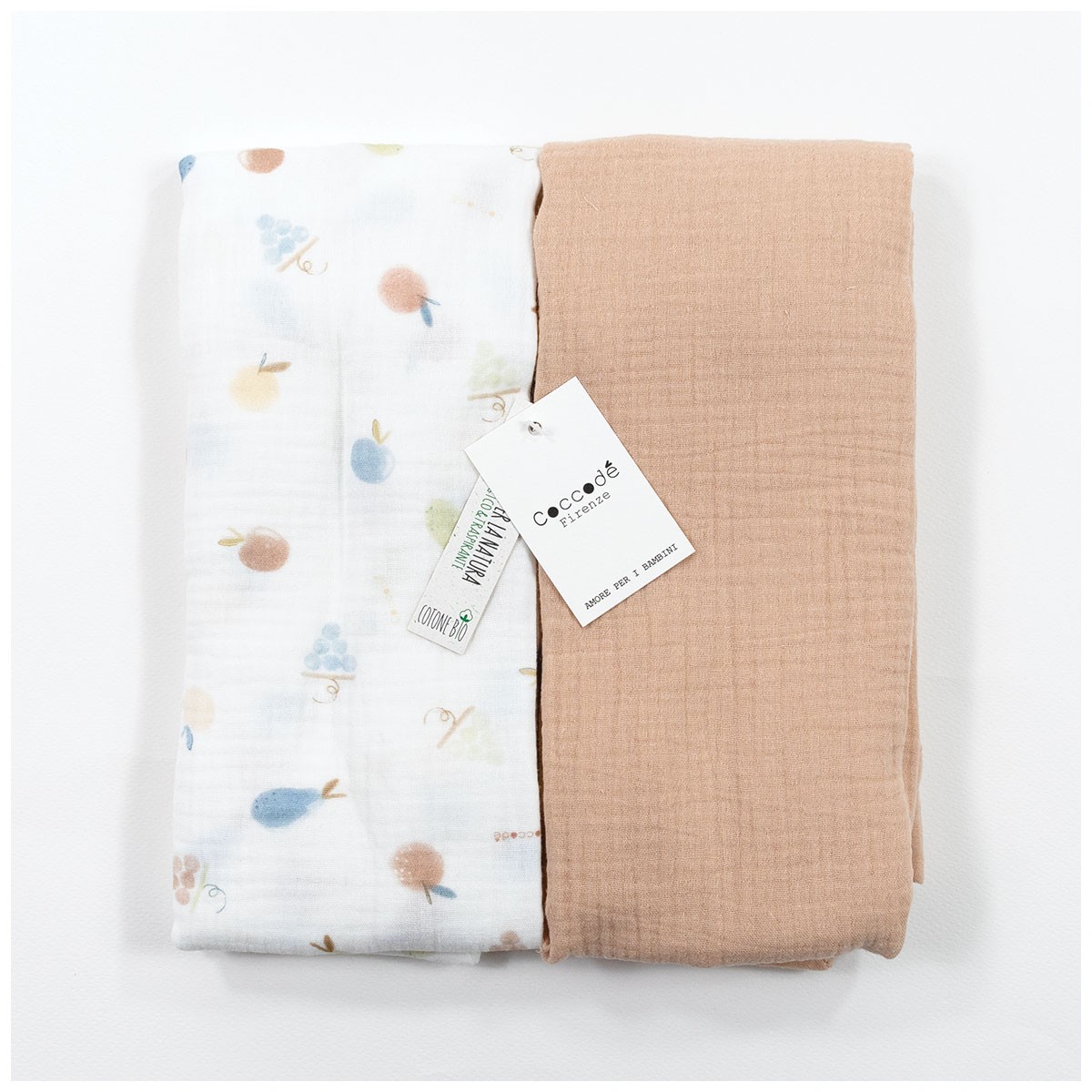 Fruttiny - Set 2 quadrati di garza cotone biologico - Coccode' Firenze