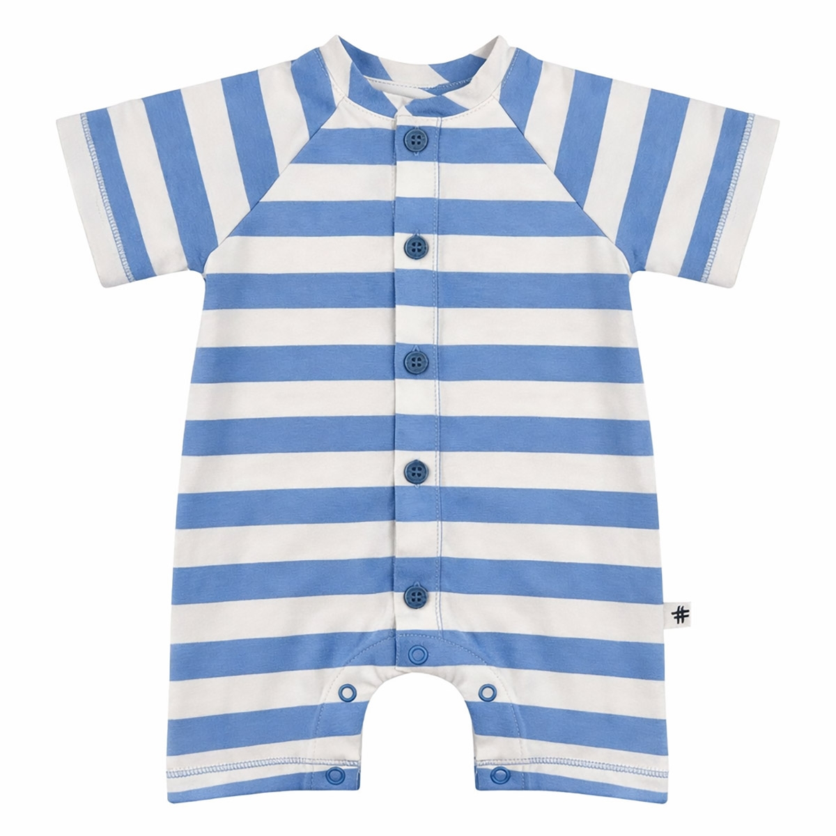 Delicato sulla pelle e curato in ogni dettaglio, questo pagliaccetto per neonato Coccode' Firenze è realizzato in soffice cotone jersey biologico, perfetto per accompagnare il tuo bambino durante la stagione estiva. La raffinata fantasia a righe orizzontali nei toni avio ed ecrù dona un tocco elegante e senza tempo, ideale sia per il quotidiano che per le occasioni speciali. Pensato per garantire massimo comfort e libertà di movimento, rappresenta una scelta sicura e di qualità per il corredino del neonato.