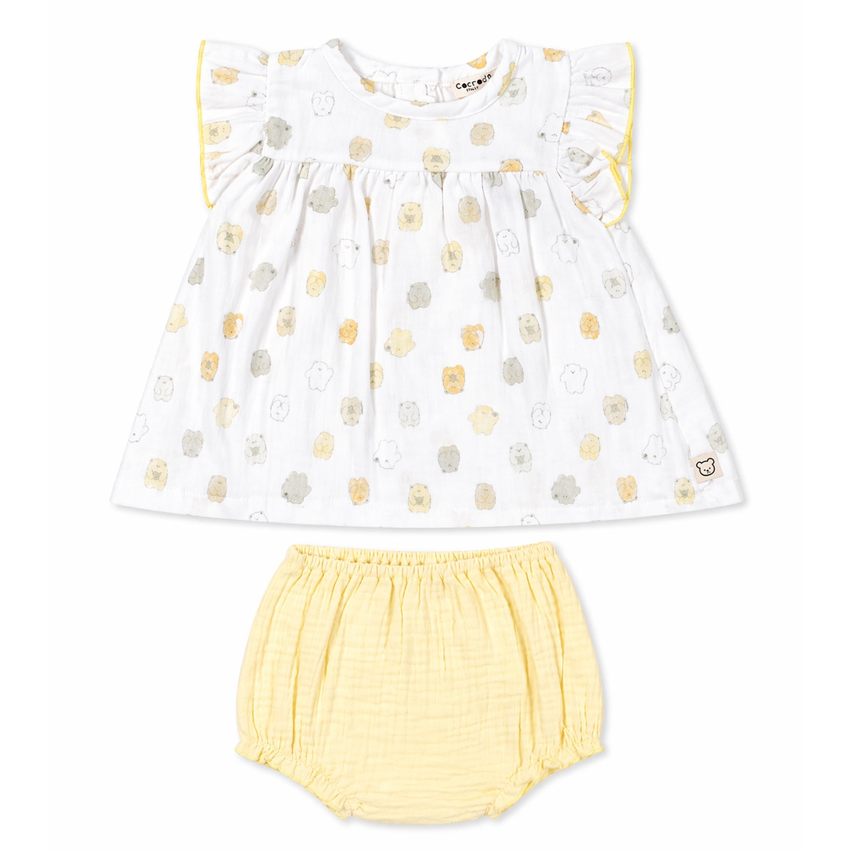 Abitino e coulotte neonata in garza di cotone Coccode’ – coordinato leggero con stampa delicata
