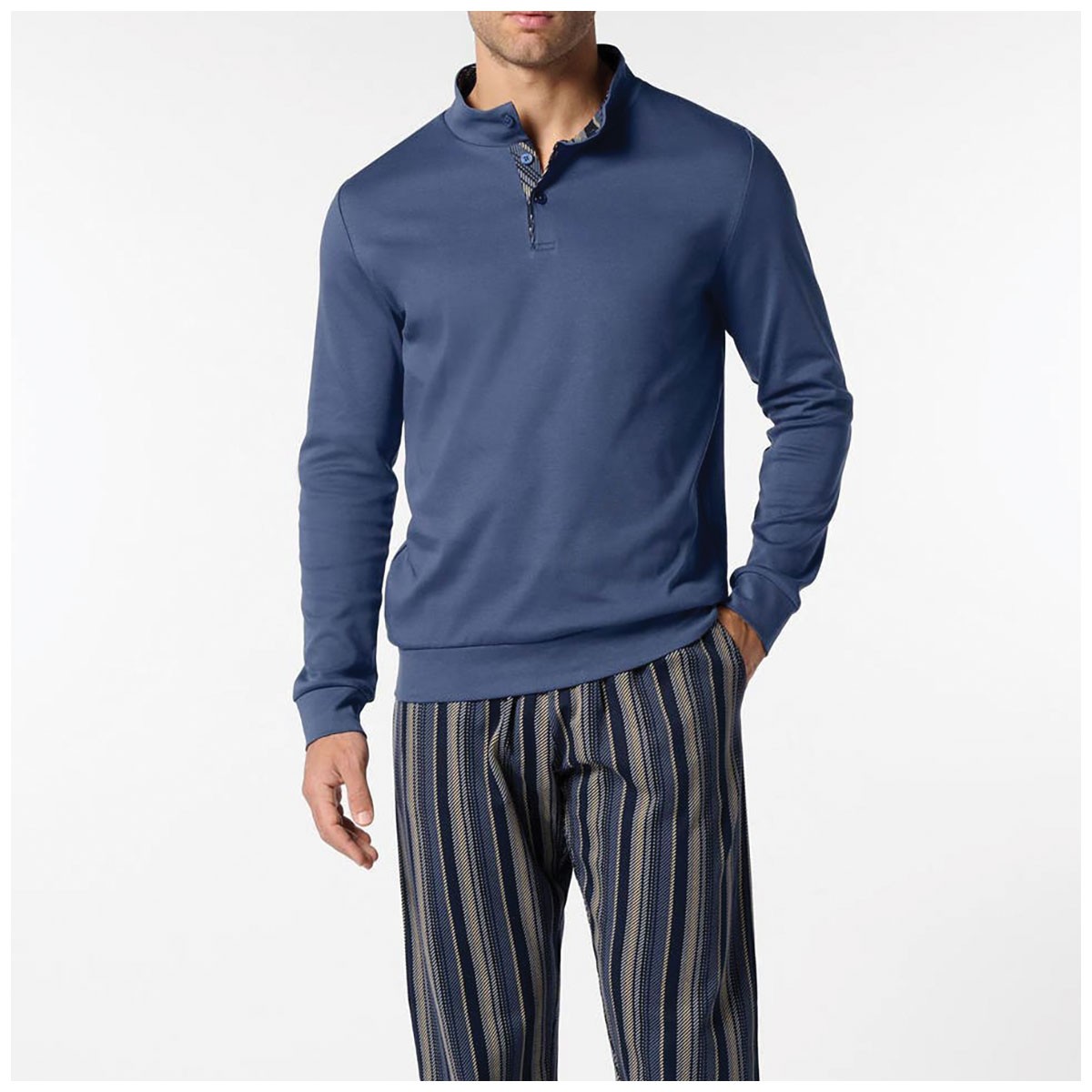 Il pigiama invernale Perofil in caldo cotone interlock è la scelta ideale per chi cerca comfort e stile nelle fredde notti d’inverno. Realizzato con materiali di alta qualità, unisce la morbidezza del tessuto al design moderno e raffinato. Il modello lungo con maglia a lupetto e bottoni offre un tocco di eleganza e praticità, mentre il pantalone con fantasia a righe e polsino alla caviglia assicura una vestibilità comoda e avvolgente. Perfetto per chi desidera un pigiama Perofil in caldo cotone dal taglio giovane e comodo capace di garantire benessere e durata nel tempo.