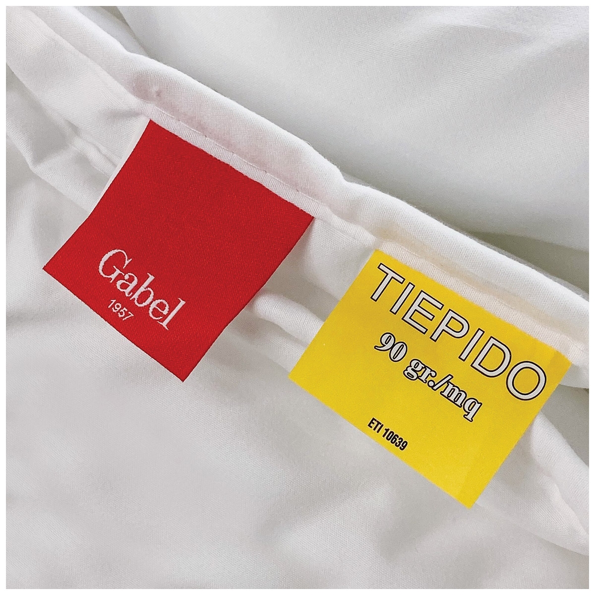 Dettaglio etichette piumino tiepido microfibra 90 gr anallergico - Gabel