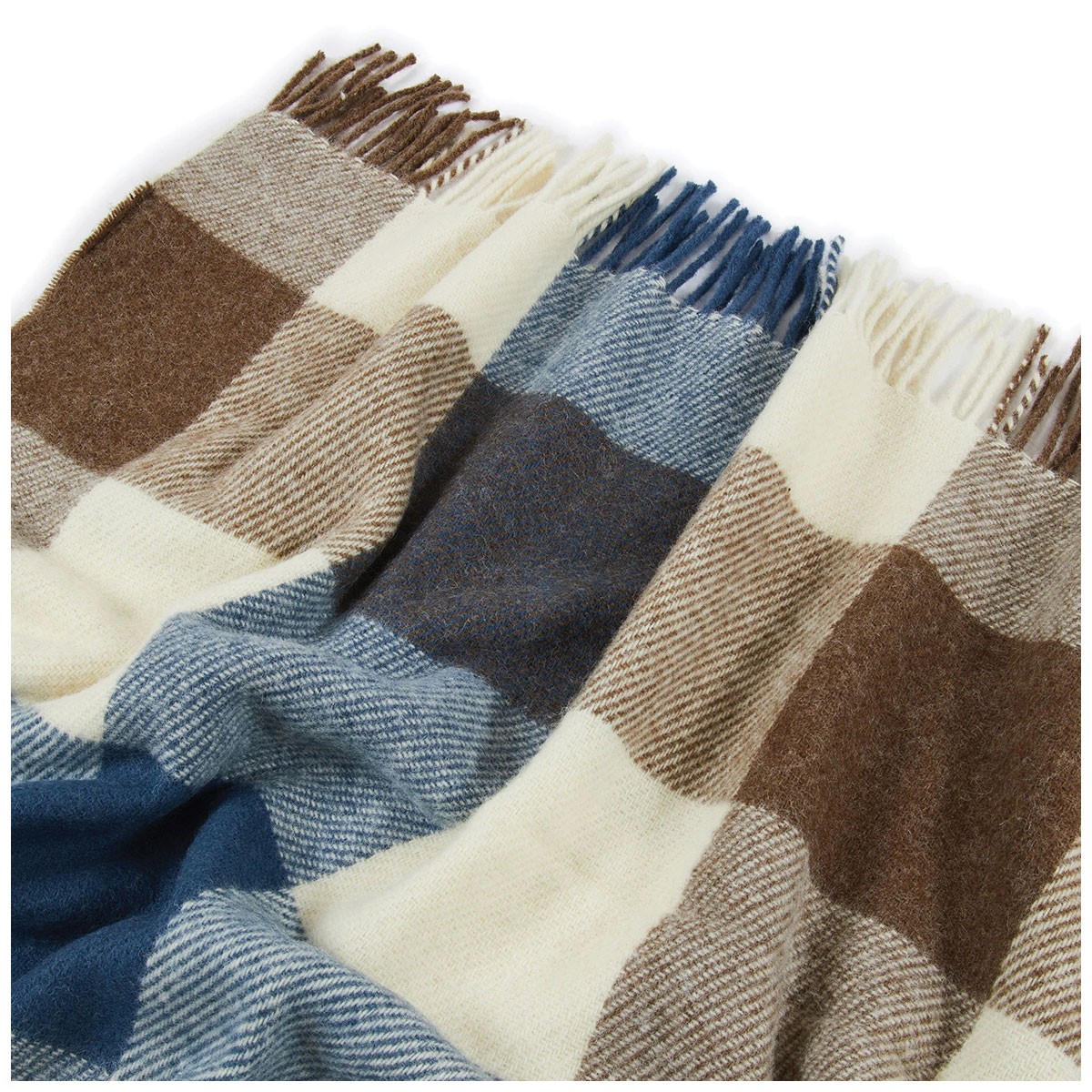 Adamello Check - coperta pura Lana con frange Lanerossi - Avio