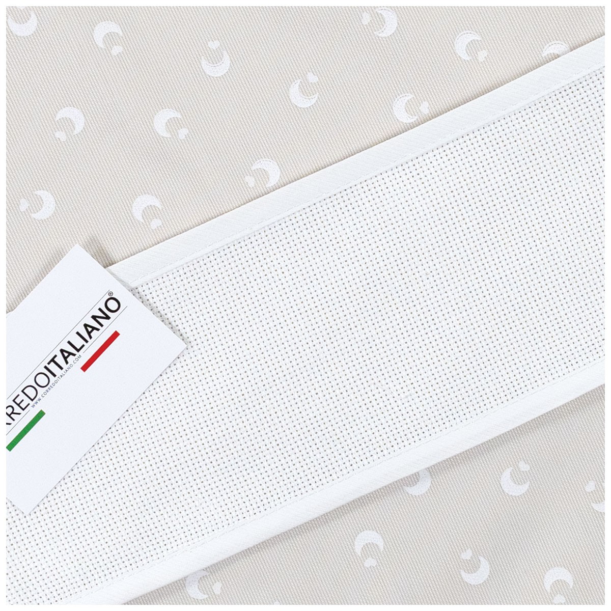 Il tessuto leggermente goffrato e la tonalità neutra rendono questo accessorio perfetto per essere abbinato a qualsiasi tipo di biancheria o coordinato nascita.