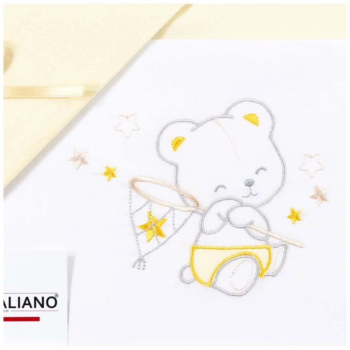 Completo lenzuola 3 pezzi in 100% puro cotone rifinito con orsetto ricamato a rilievo.