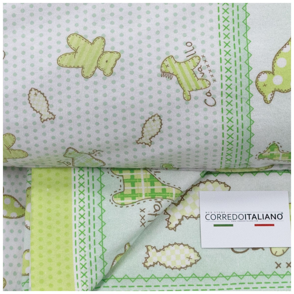 Set lenzuola in flanella per lettino - Puppets Verde - Biancaluna