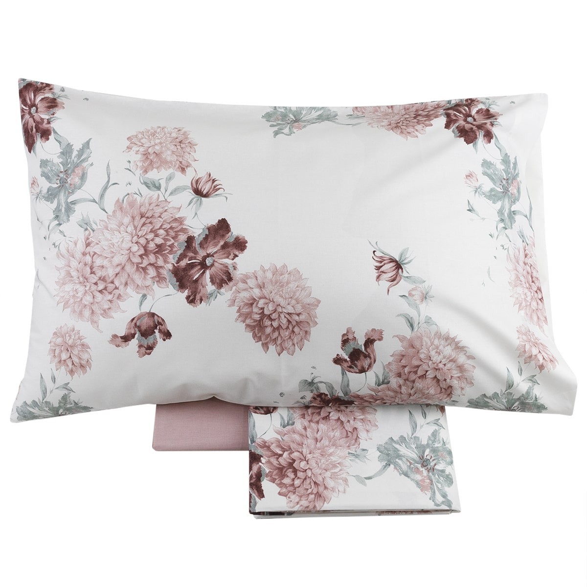 Il modello Vaniglia è caratterizzato dalla fantasia con fiori e foglie sia sulle federe che sul lenzuolo sopra.
