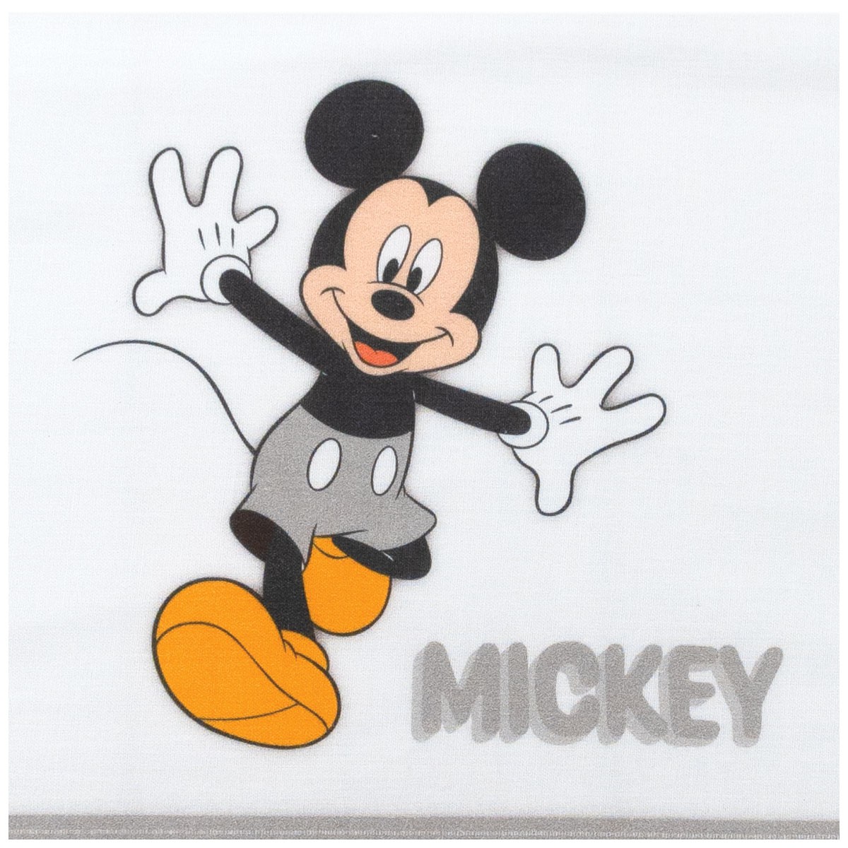 Completo lenzuola 3 pezzi in puro cotone della collezione Disney baby rifinito con Topolino stampato sul lenzuolo sopra su un bello sfondo multicolor.